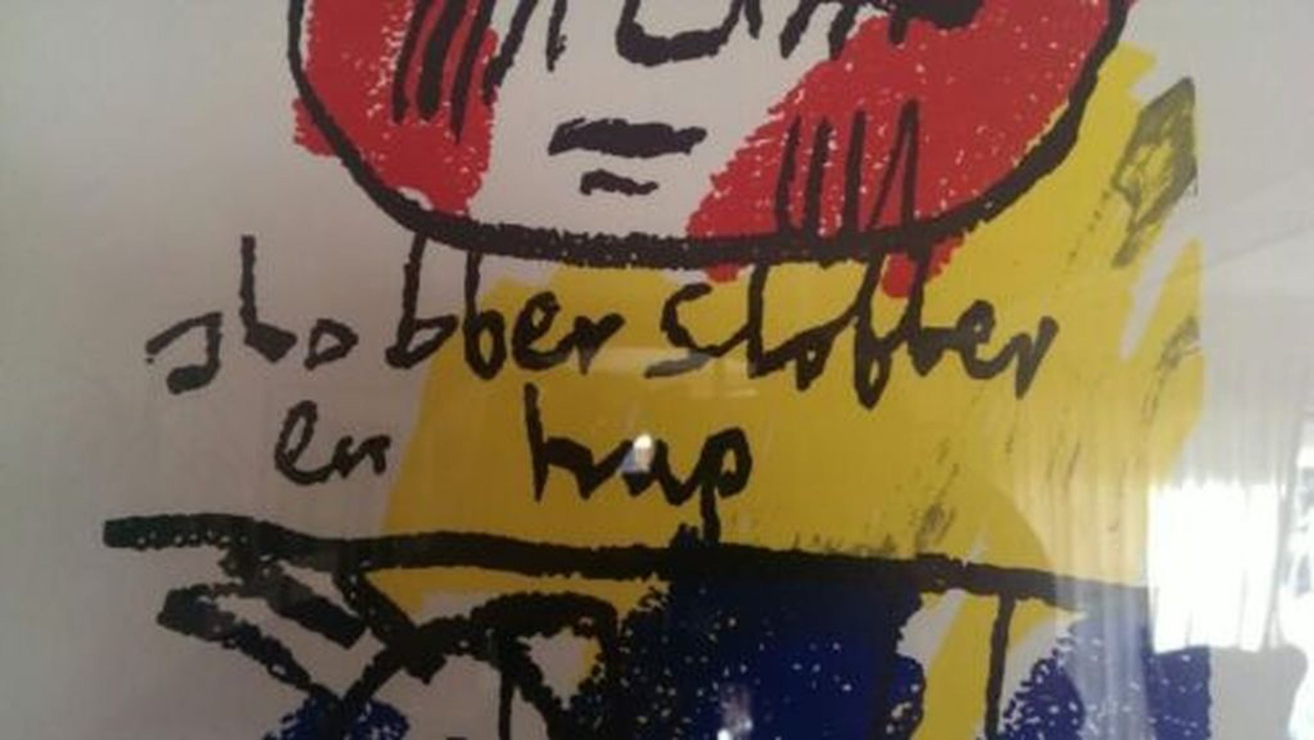 Ingelijste litho van Herman Brood, getiteld Slobber slobber en hup