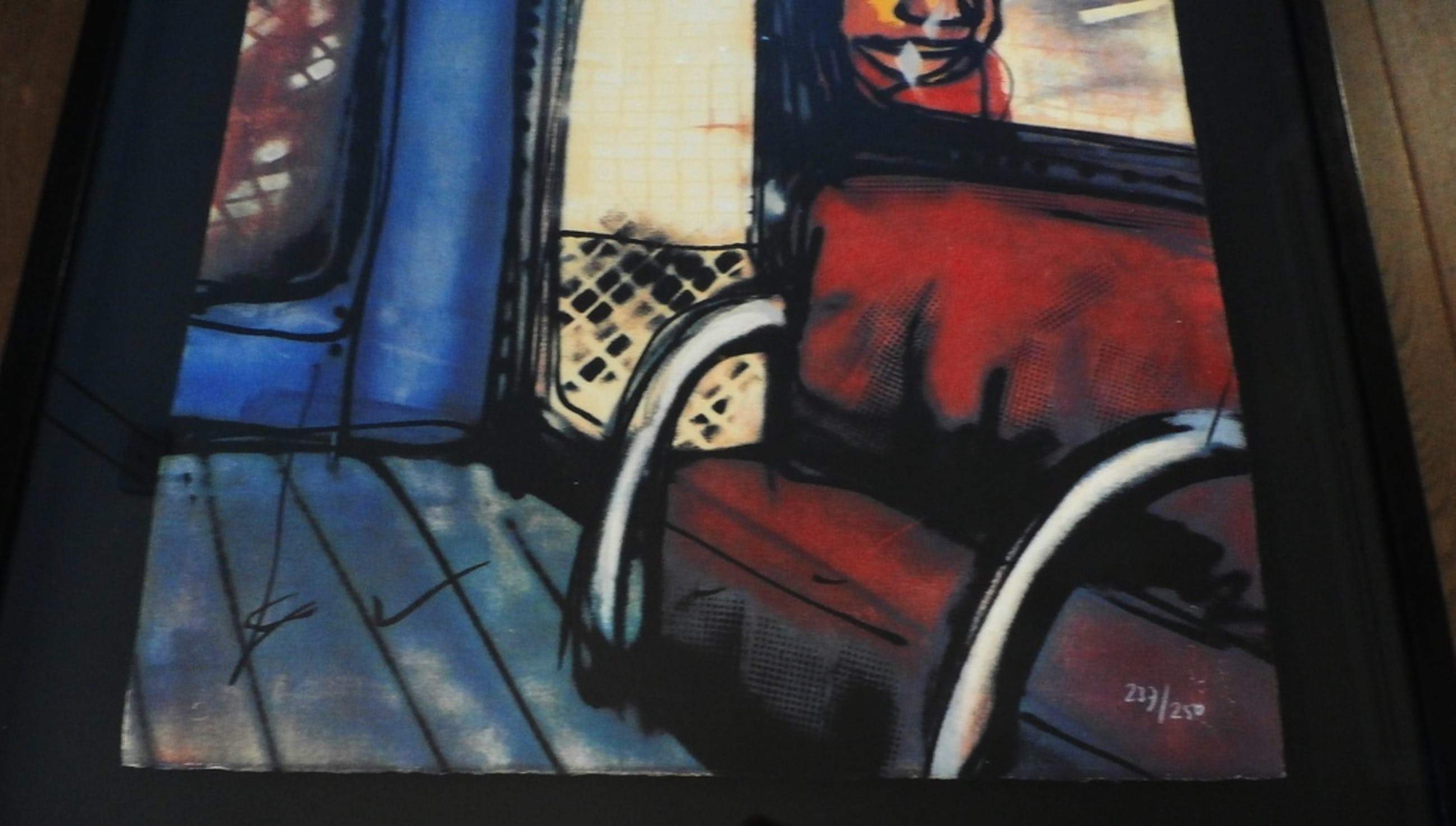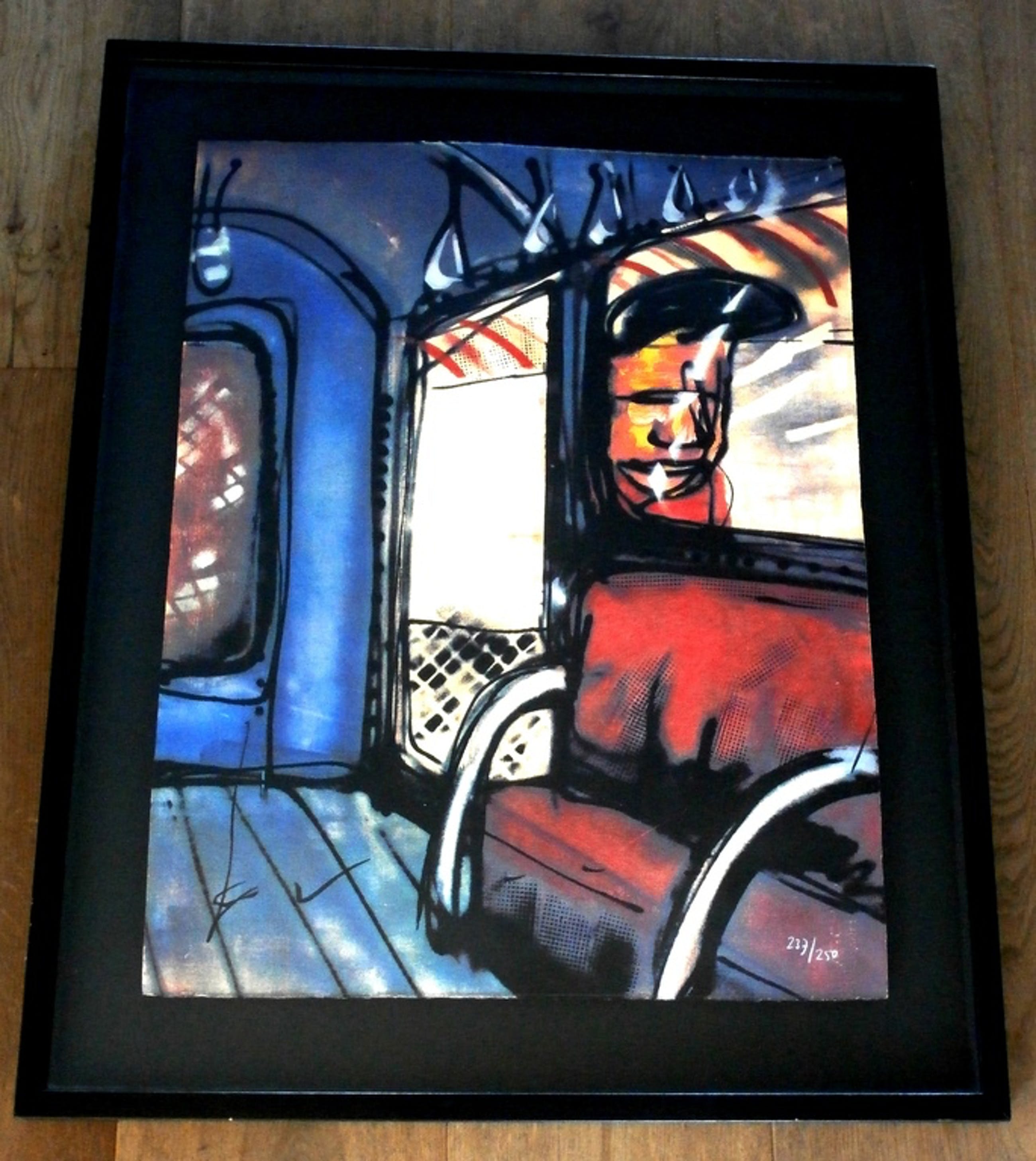 Mooi zwevend ingelijste zeefdruk van Herman Brood. Titel: Metro. Nummer: 237/250. Afmetingen incl. lijst: H81 x b65,5 cm. Afmetingen voorstelling: H65 x b50 cm. De authenciteit van dit werk wordt volledig gegarandeerd. Een certificaat van echtheid kan, op verzoek, worden meegestuurd.