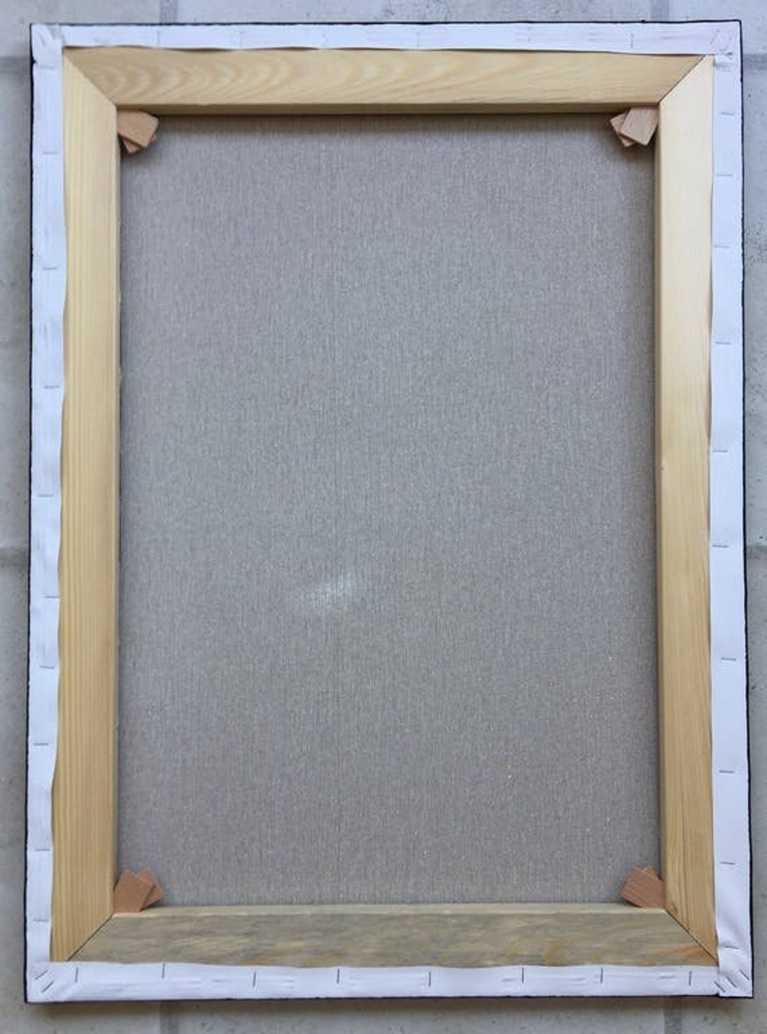 Het werk is opgespannen op een stevig houten frame, het werk kan direct aan de muur.