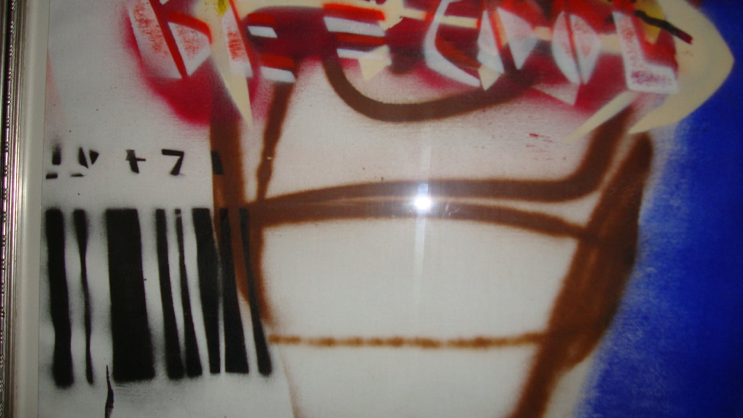 Met verf en spuitbus gemaakt.