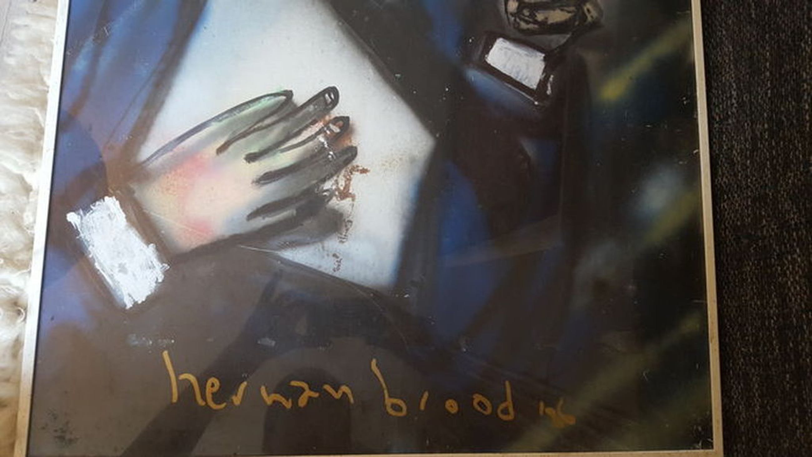 Dit is een uiterst zeldzaam en vroeg werk, is door vorige eigenaar aangekocht op de allereerste expositie die Herman Brood ooit heeft georganiseerd in 1986 te Gallery Forum te Amsterdam. Dergelijke vroeg werk kom je haast nooit tegen want Herman schilderde in die tijd nog nauwelijks. De schotwonde is echt bloed van Herman en heeft hij met een injectienaald op het werk aangebracht.