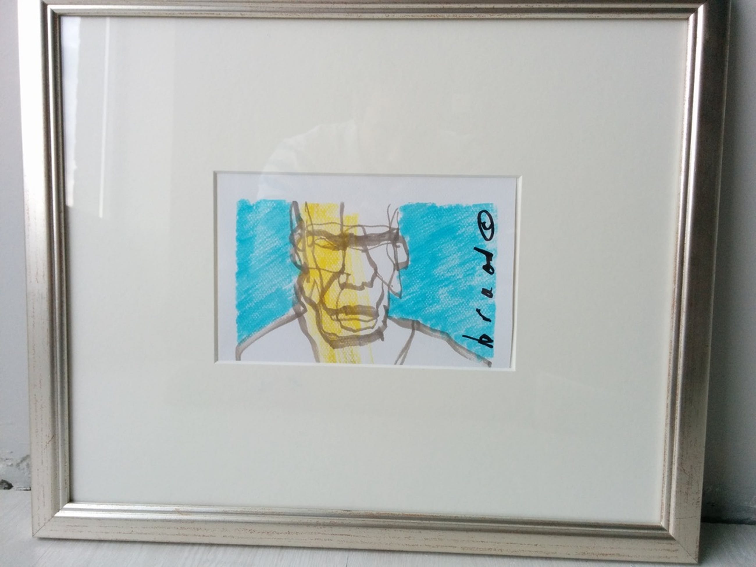 Werk wordt verkocht met glazen lijst zilveren lijst die op de foto is weergegeven