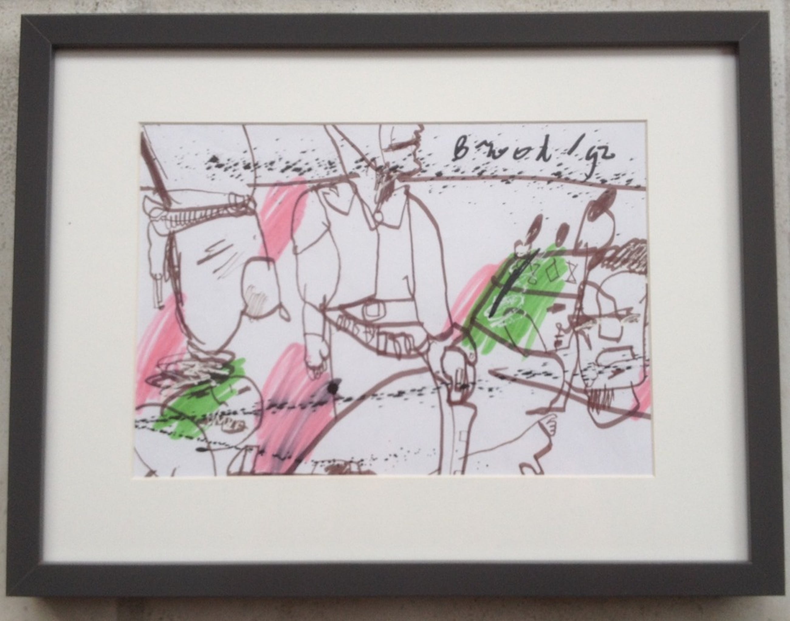 Tekening is reeds ingelijst (foto 2), totale afmeting is 43 x 33 cm.