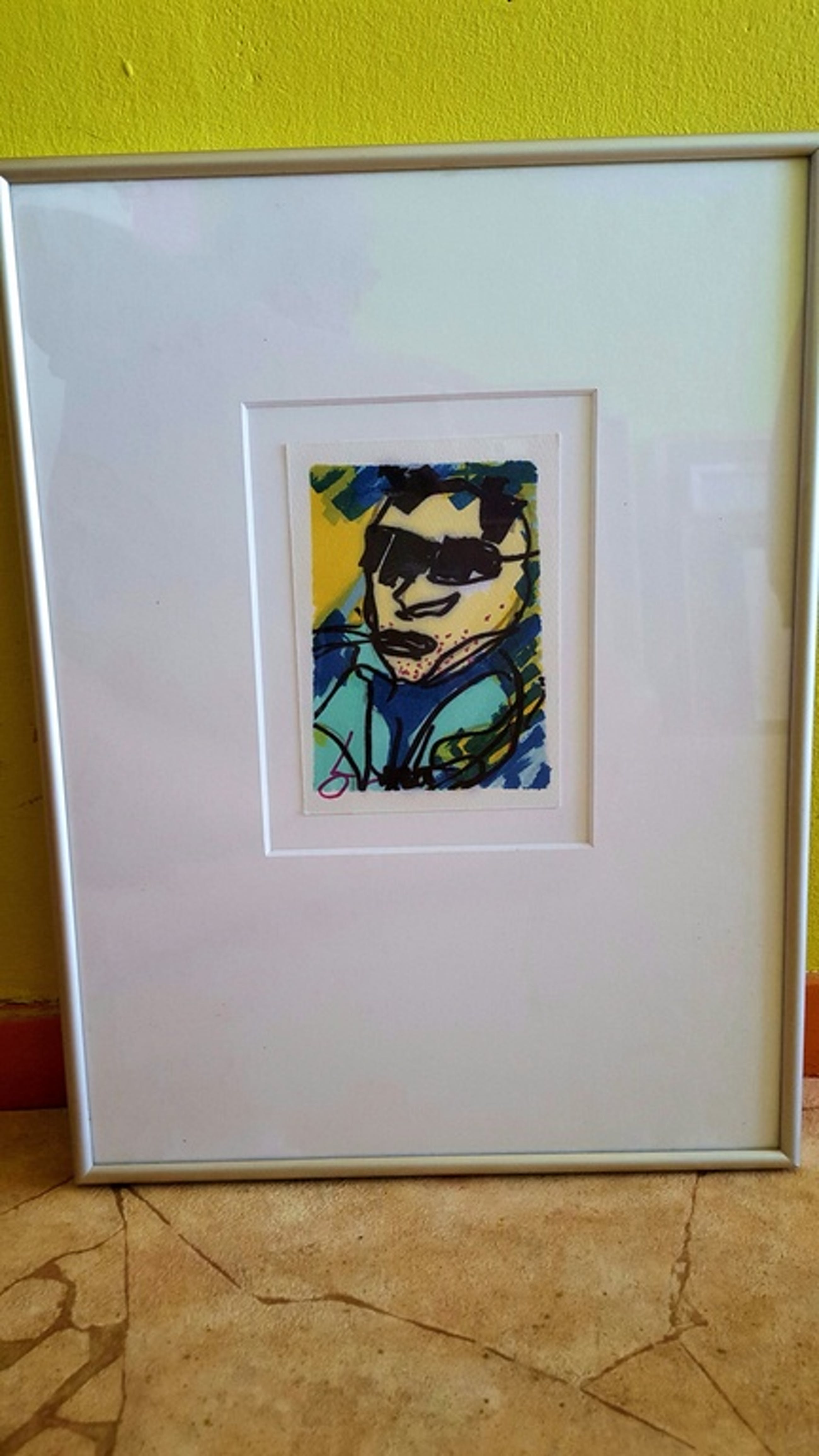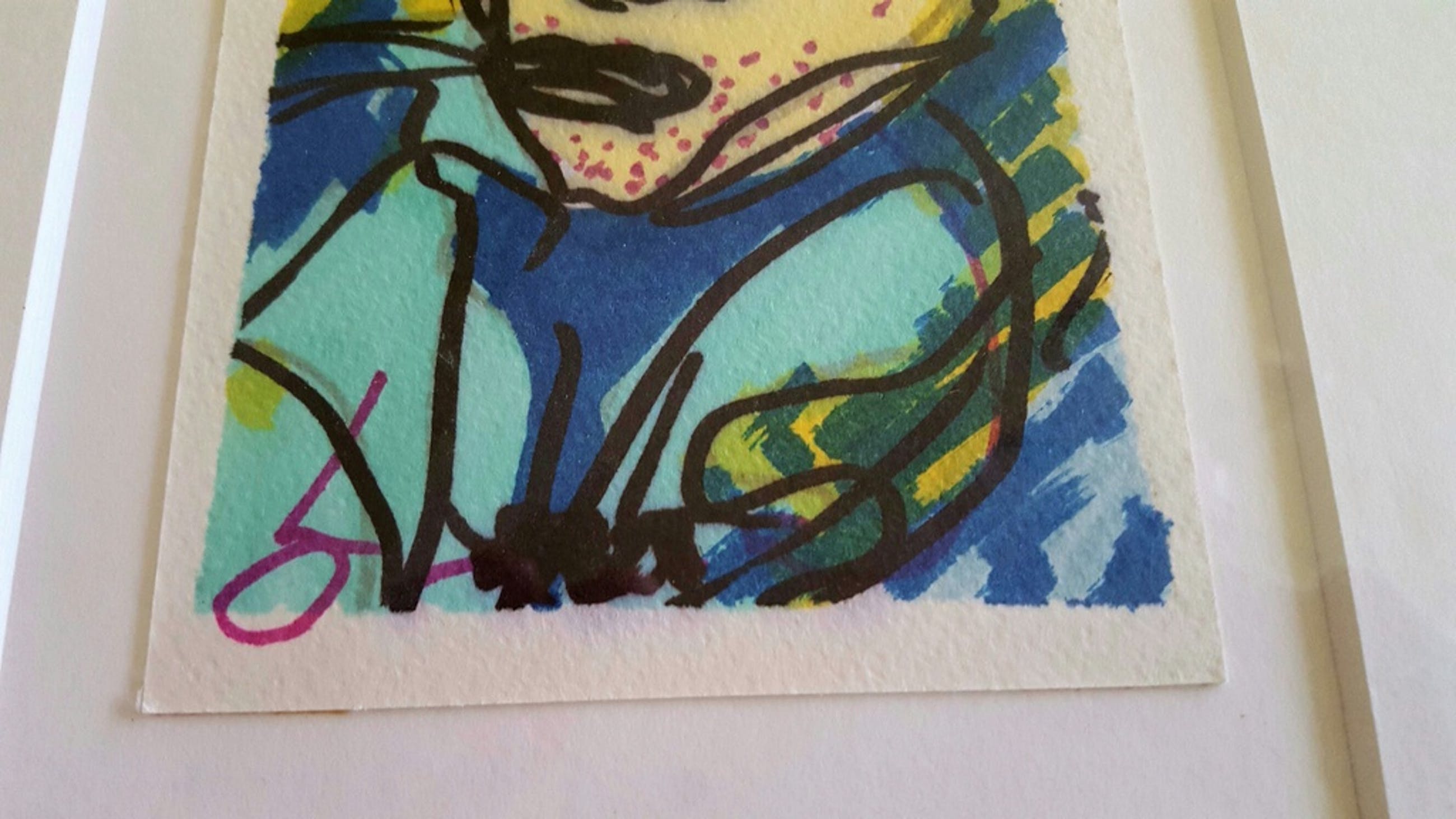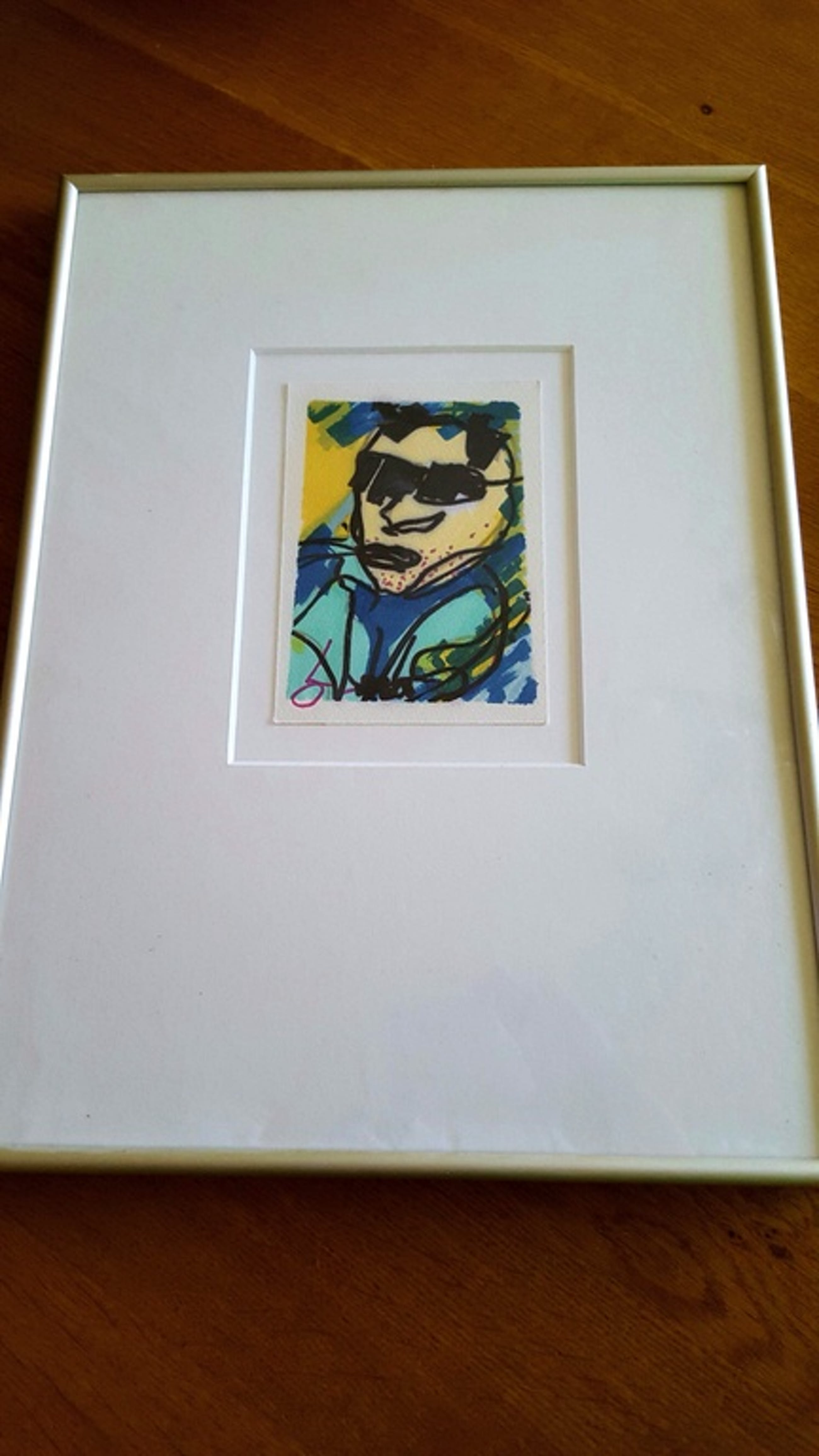 Mooie stifttekening op briefkaartformaat van Herman Brood.