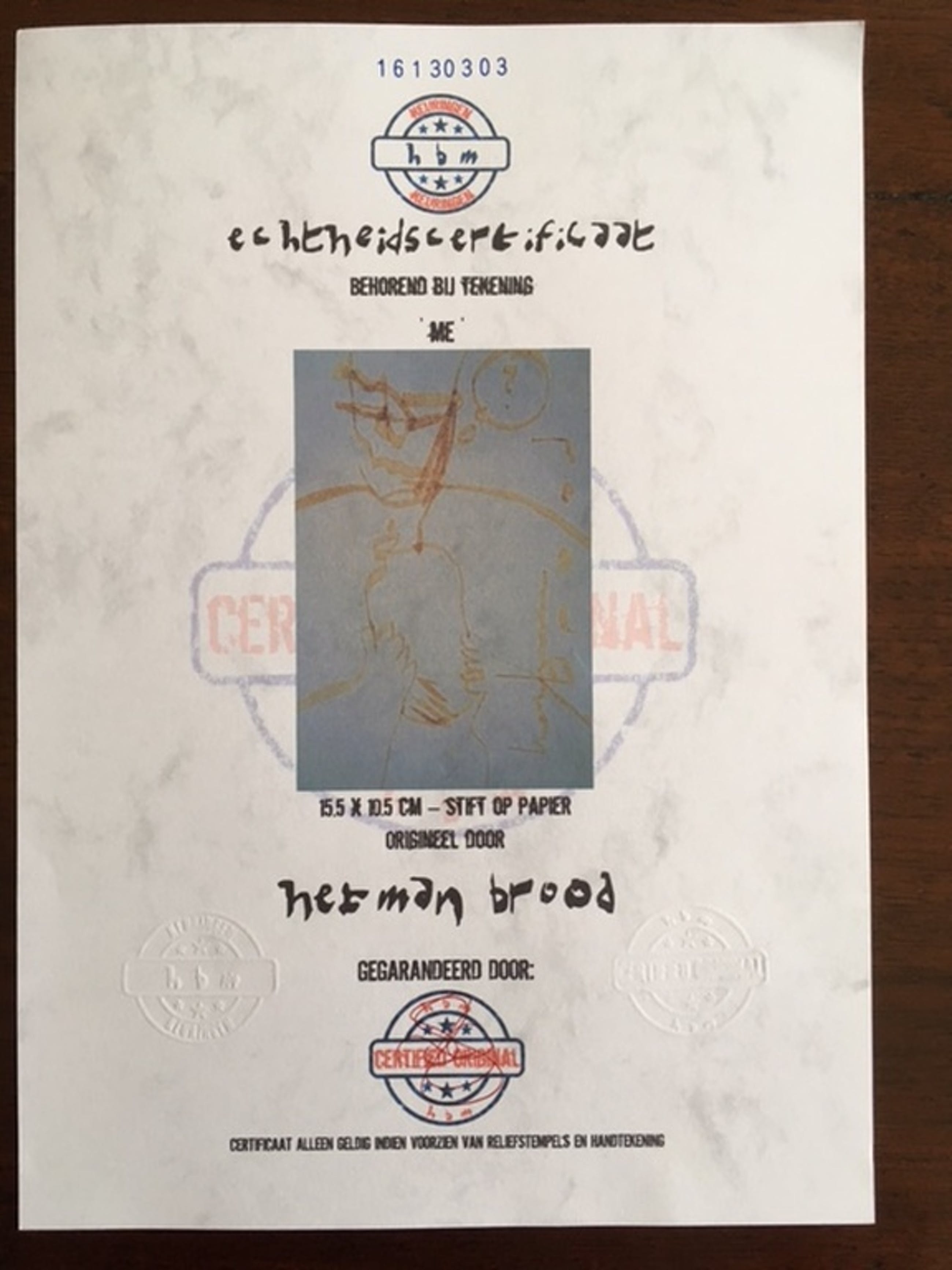 Inclusief certificaat van hbm (voorheen het Herman Brood Museum) t.w.v. 85 euro.