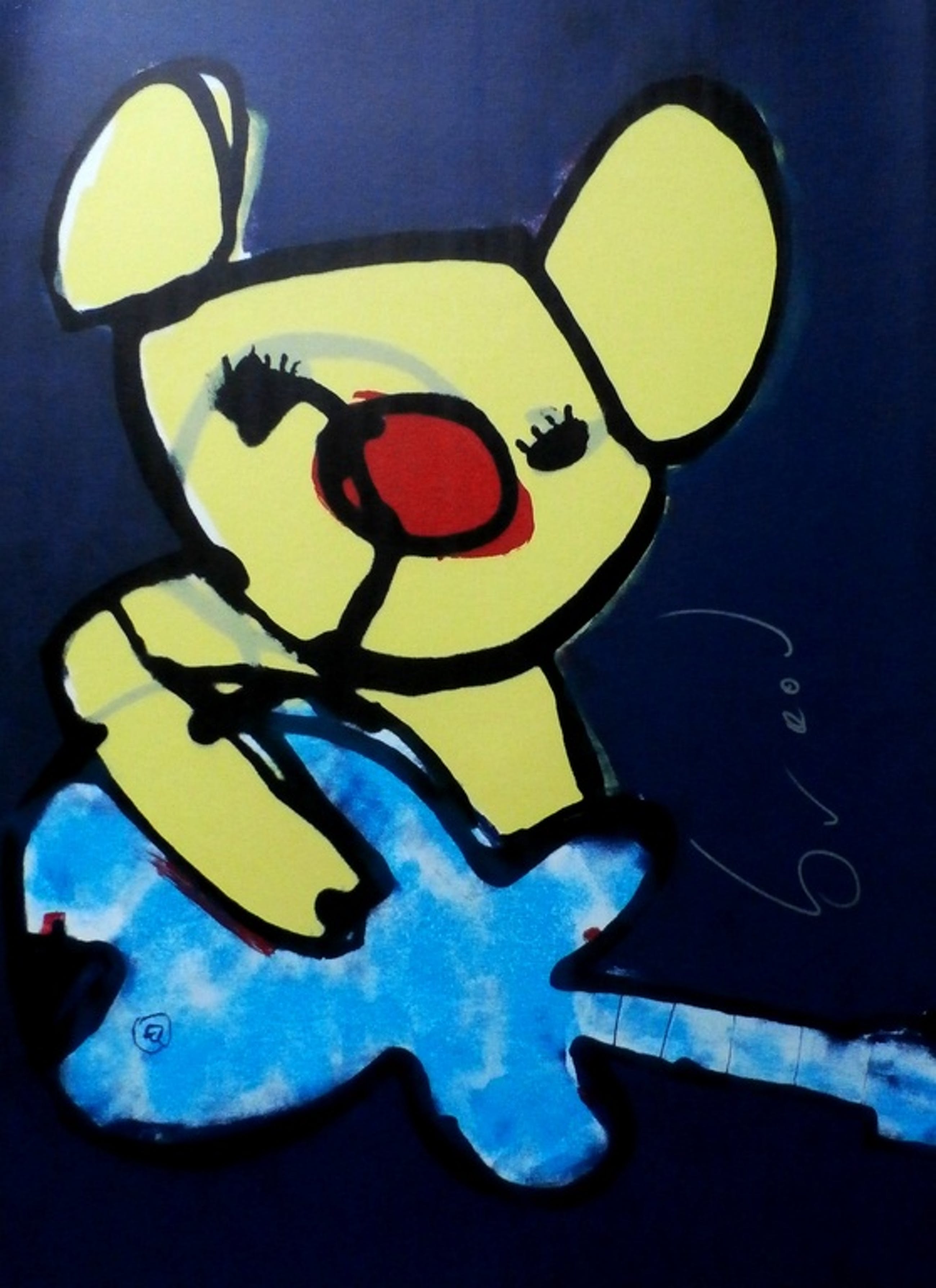 Zeefdruk van Herman Brood. Titel: Beertje. Afmetingen: H103 x b76 cm. Het werk is aan de rechterzijkant gesigneerd, door de kunstenaar, met zilveren marker. De authenciteit van dit werk wordt volledig gegarandeerd. Een certificaat van echtheid kan, op verzoek, worden meegeleverd.
