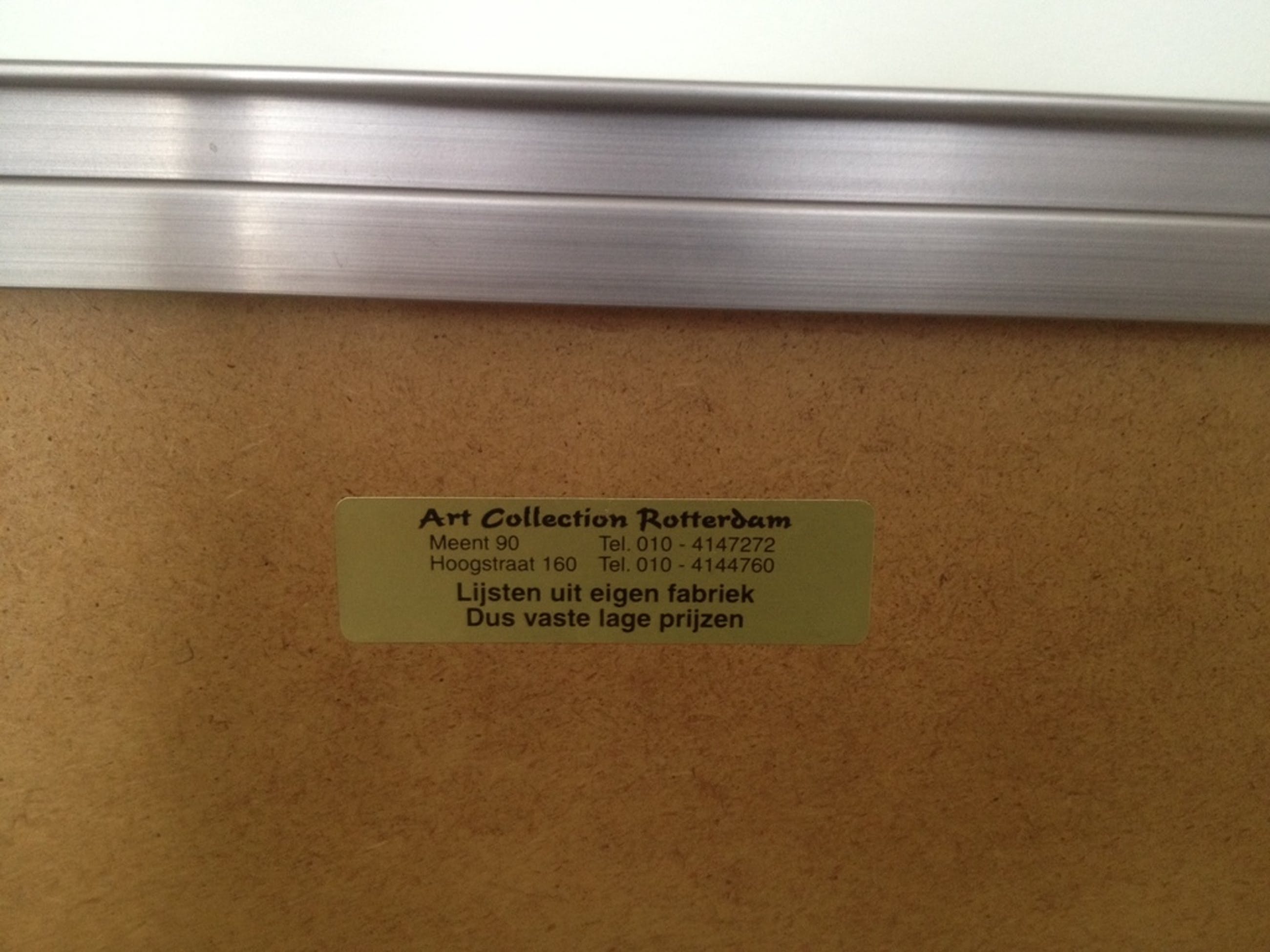 Het werk is fraai ingelijst in een metalen lijst met passe partout, de lijst meet 93 x 73 cm.