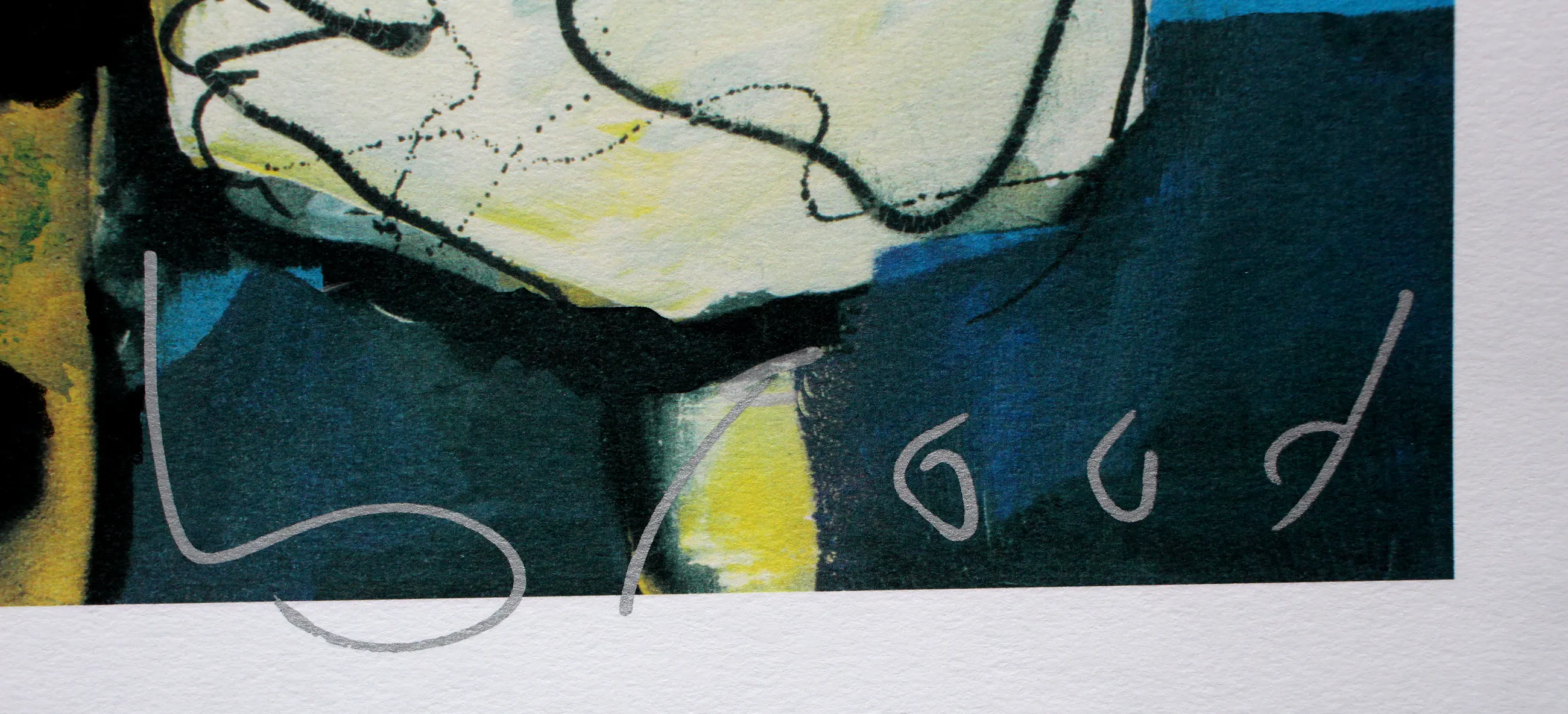 Zeefdruk van Herman Brood. Titel: Van God Los. Nummer: E.A. Afmetingen blad: H70,5 x b69,5 cm. Afmetingen voorstelling: H60 x b62 cm. Het werk is rechts onder, met zilveren marker, gesigneerd, door de kunstenaar. De authenticiteit van het werk wordt volledig gegarandeerd. Een certificaat van echtheid kan , op aanvraag, worden gemaild.