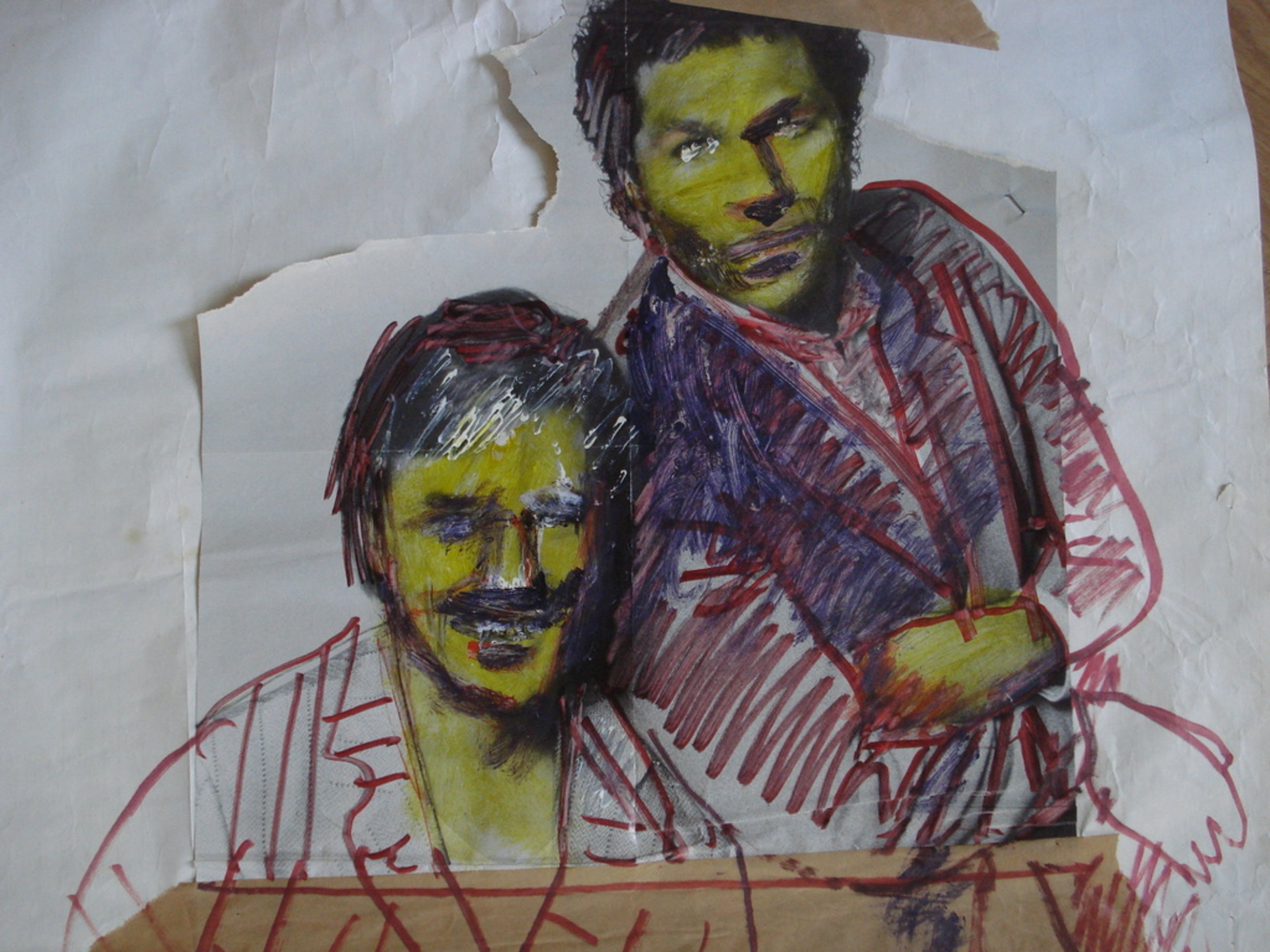 Na een optreden in 1986 maakte Herman Brood Backstage een aantal tekeningen en collages op flipoverpapier.