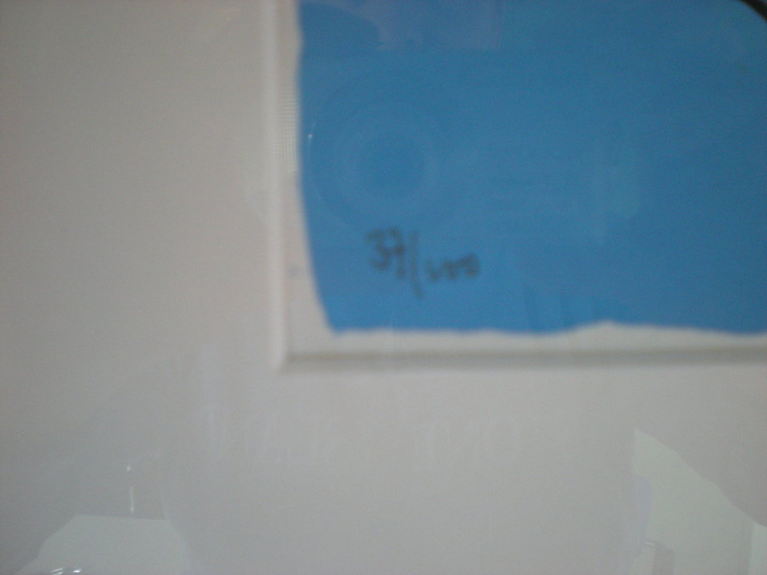 Gesigneerde zeefdruk uit een oplage van 100 stuks.Zilver kleurige lijst.