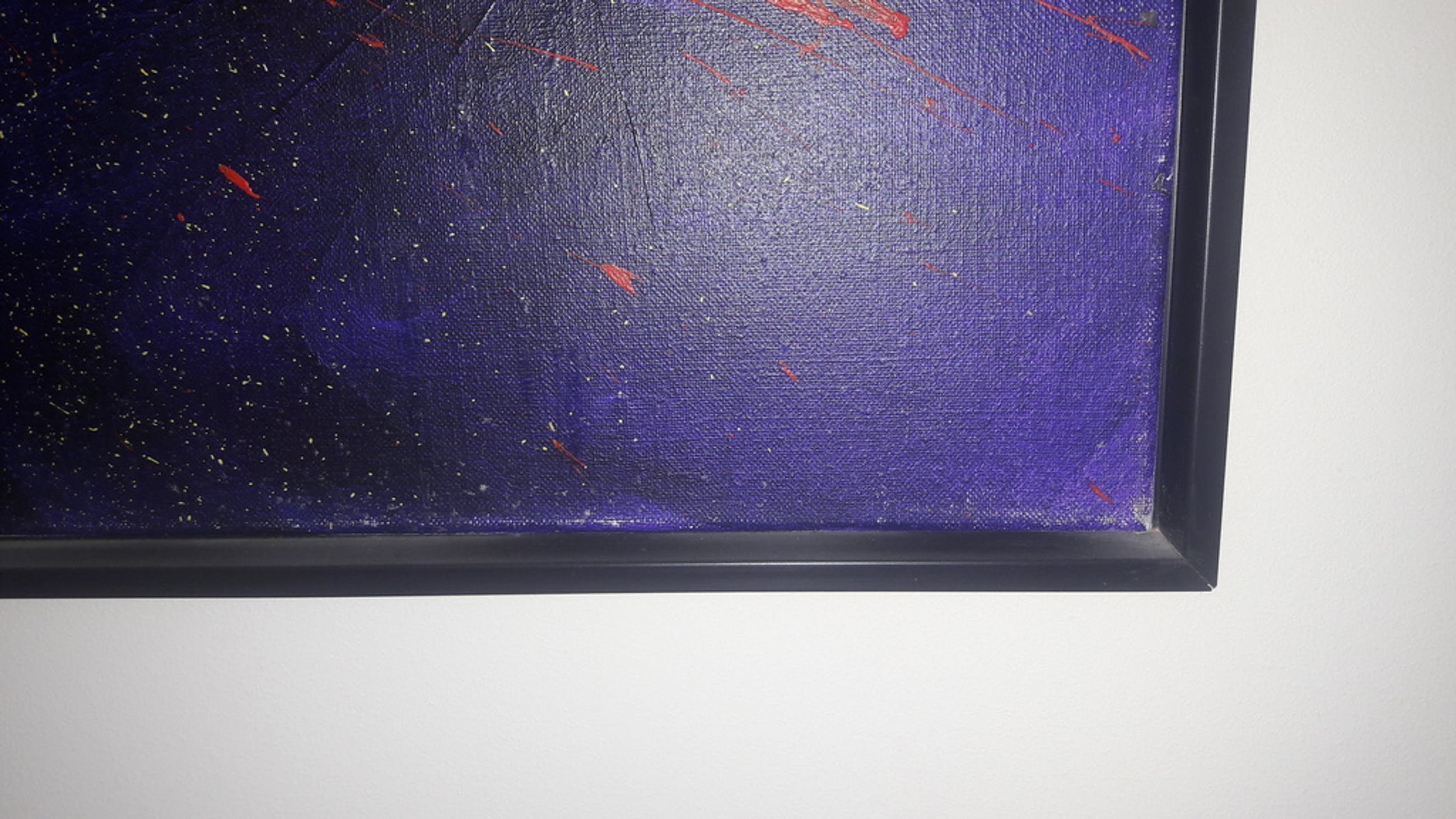 het doek zit omlijst door een metalen lijst