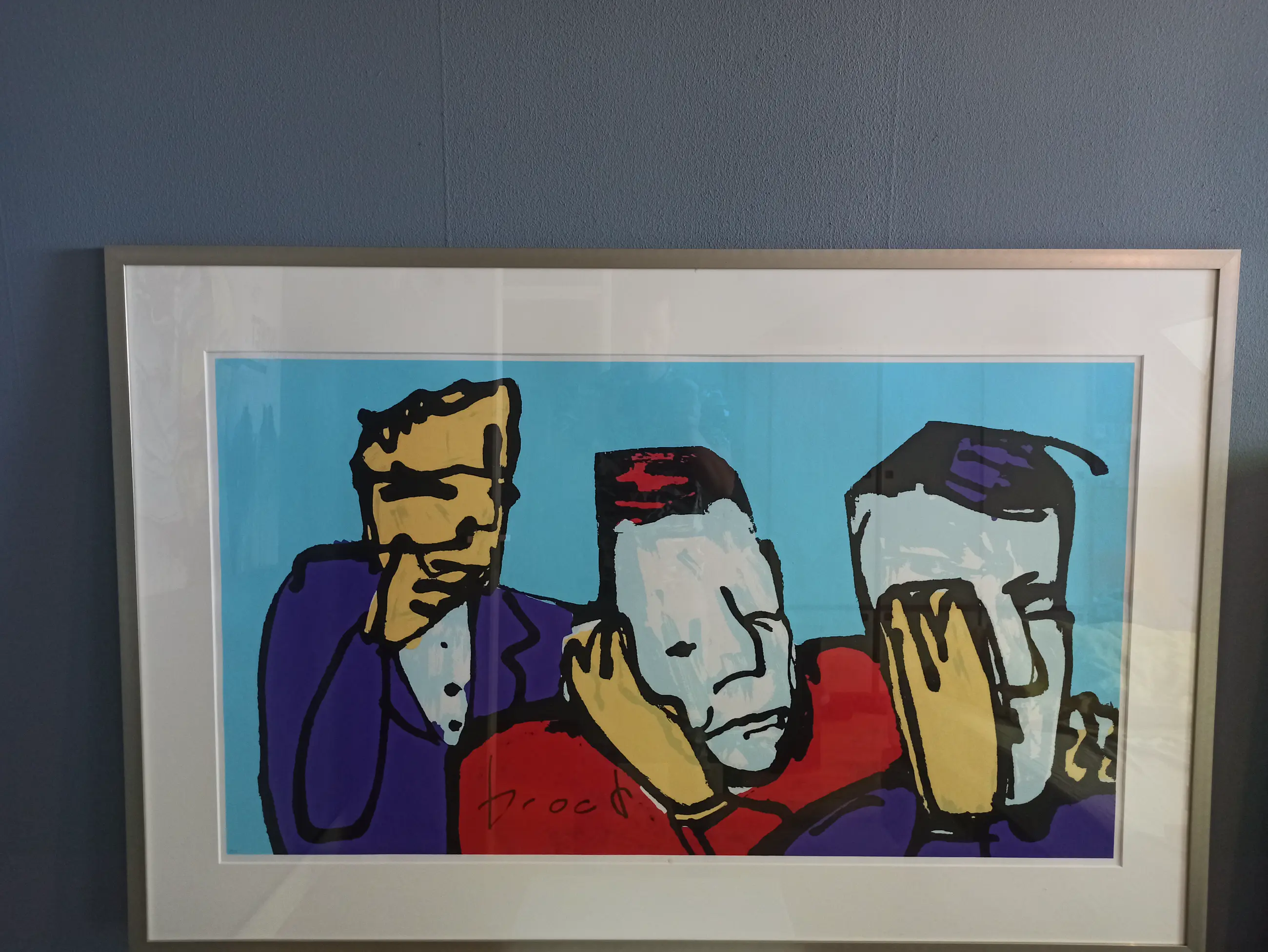 Zeer fraaie en grote zeefdruk van Herman Brood - Horen Zien en Zwijgen.