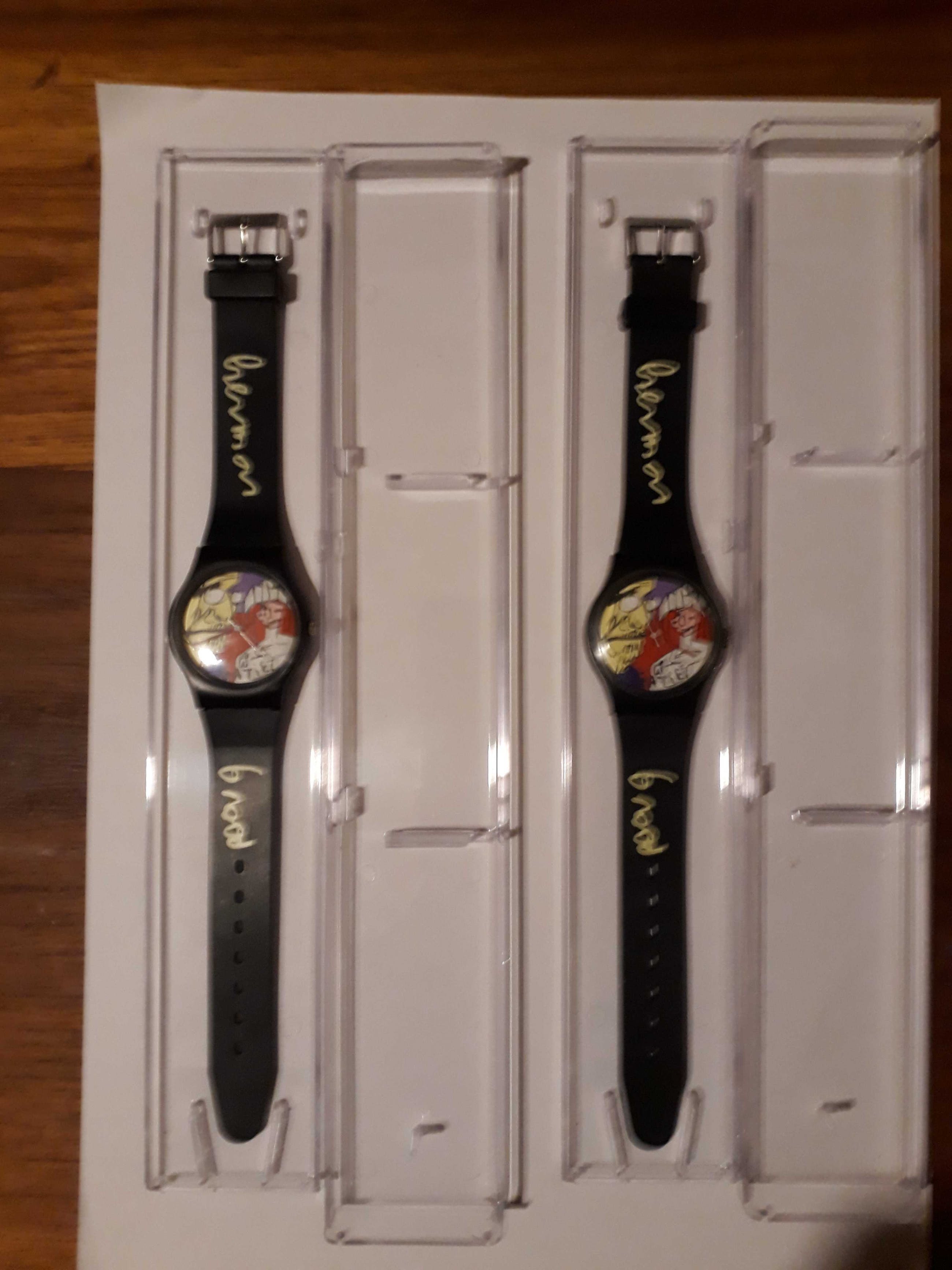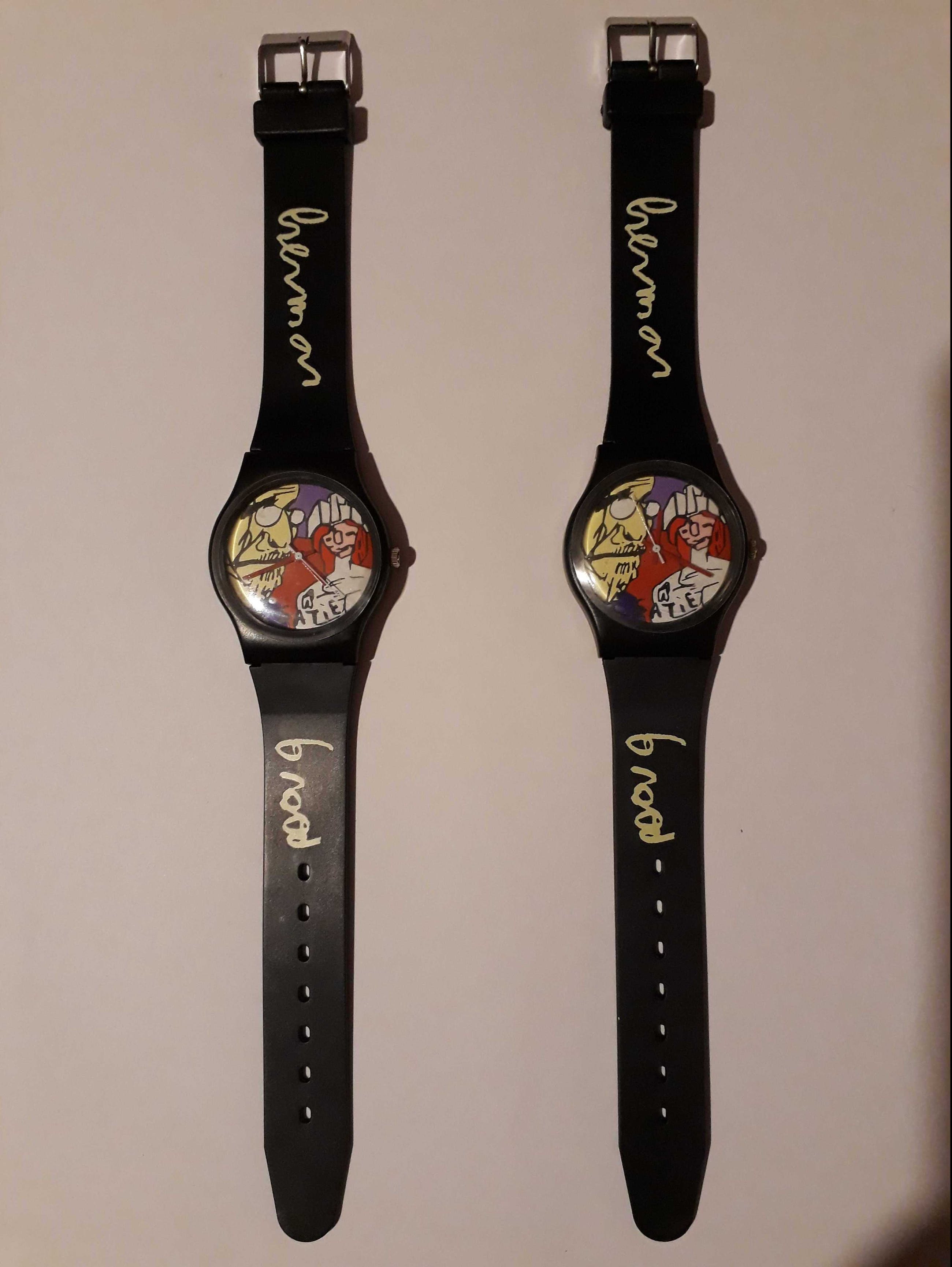Dit kavel omvat 2 nieuwe Horloges met het ontwerp van Herman Brood. Nieuw in passend doosje en nieuwe batterijen worden meegeleverd. Op het glas van de voorkant bevind zich nog een plastic beschermlaag welke verwijderd dient te worden