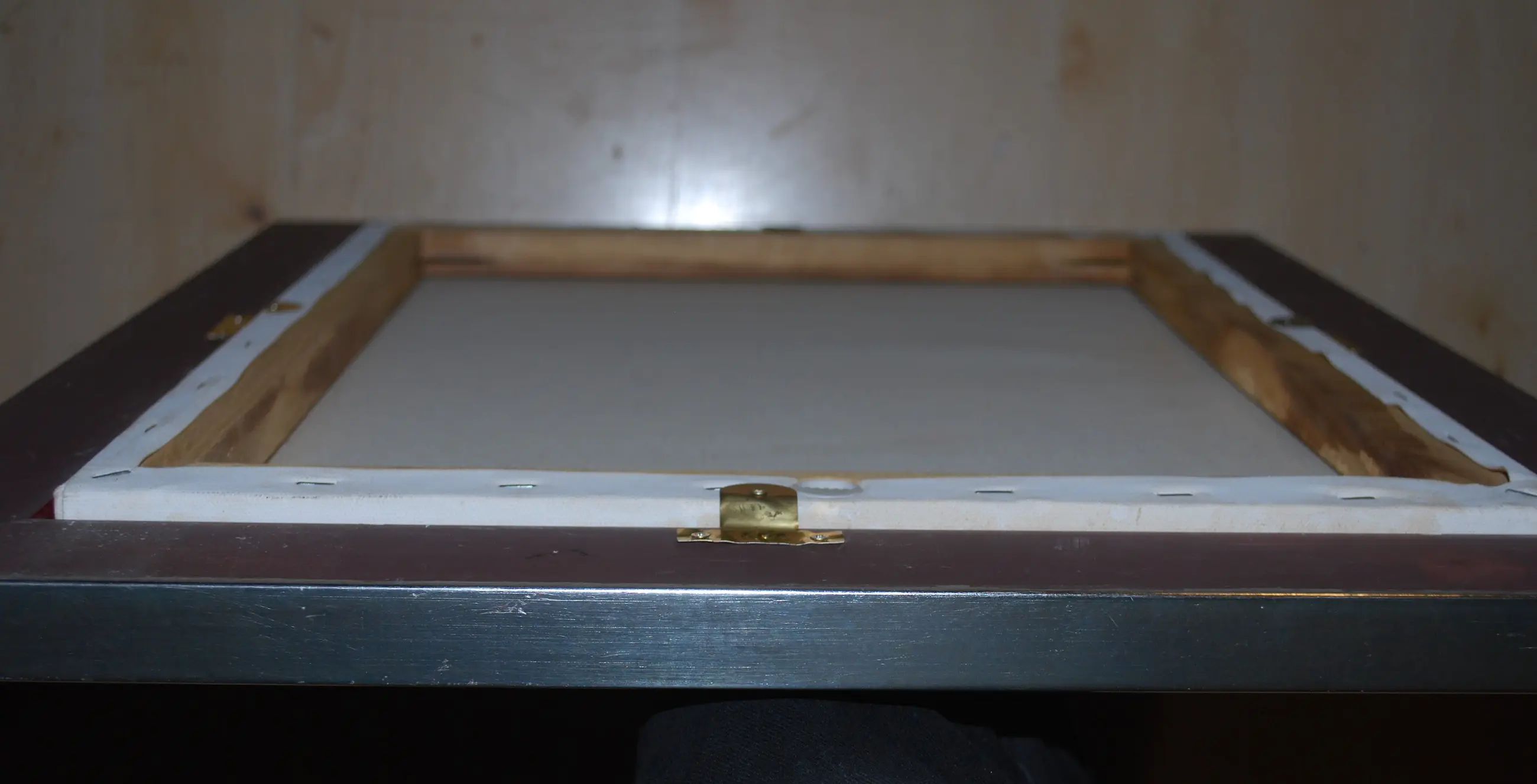 Stevig houten spieraam, geplaatst in een prachtige kwaliteit houten lijst (met wat krasjes).