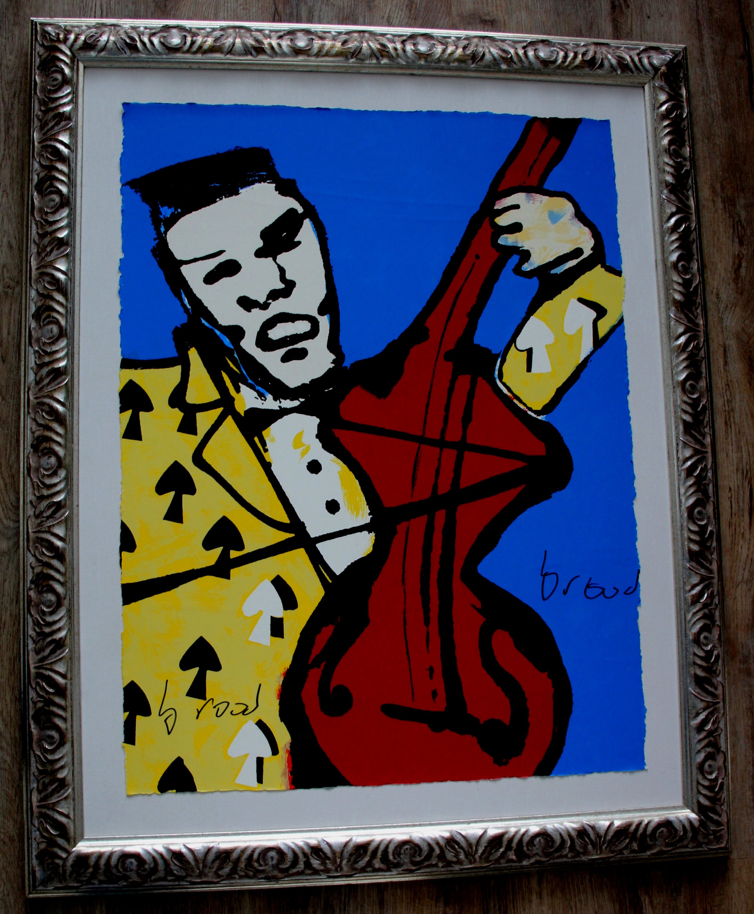 Grote ingelijste zeefdruk van Herman Brood. Titel: Cello. Het werk zit in een barok lijst, zonder glas. Afmetingen incl lijst: H109 x b88cm. Afmetingen voorstelling: H85 x b63cm. Het werk is links-en rechtsonder gesigneerd door de kunstenaar. De authenticiteit van het aangeboden werk wordt volledig gegarandeerd. Een certificaat van echtheid kan, op aanvraag, worden gemaild.