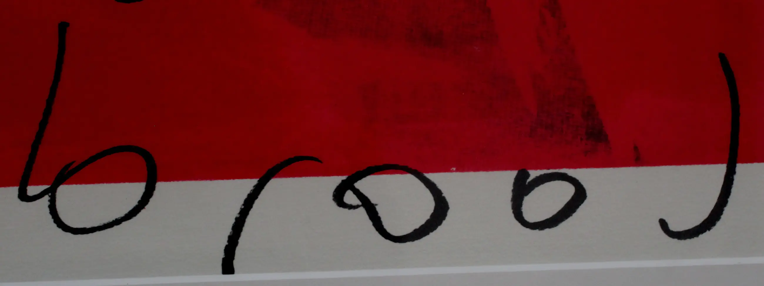 Ingelijste zeefdruk van Herman Brood. Titel: Guitar man. Jaar: 1997. Oplage: 147/150. Afmetingen incl lijst: H118 x b95cm. Afmetingen voorstelling: H87 x b64cm. Het werk is in midden onderaan gesigneerd door de kunstenaar. De authenticiteit van het aangeboden werk wordt volledig gegarandeerd. Een certificaat van echtheid kan, op aanvraag, worden gemaild.