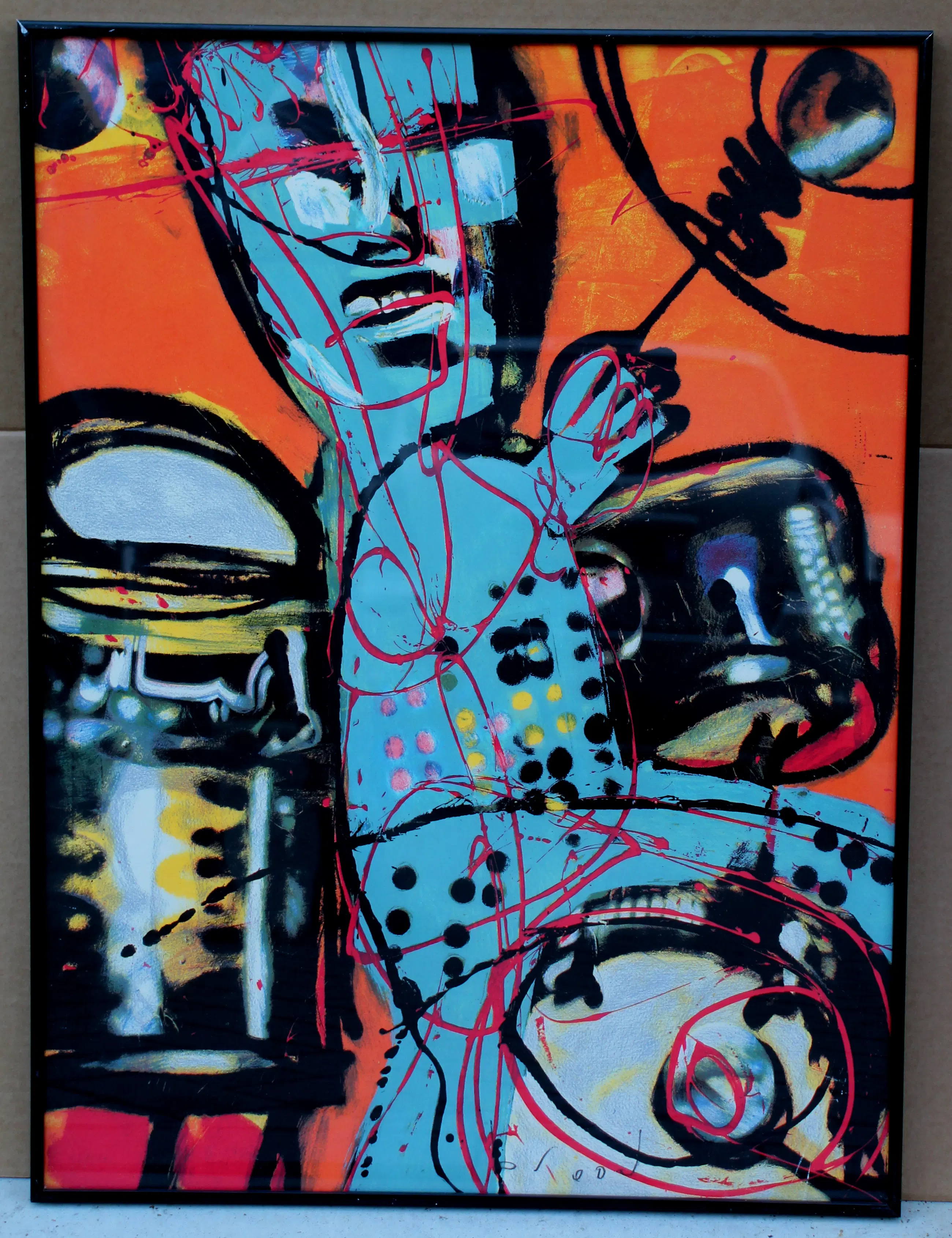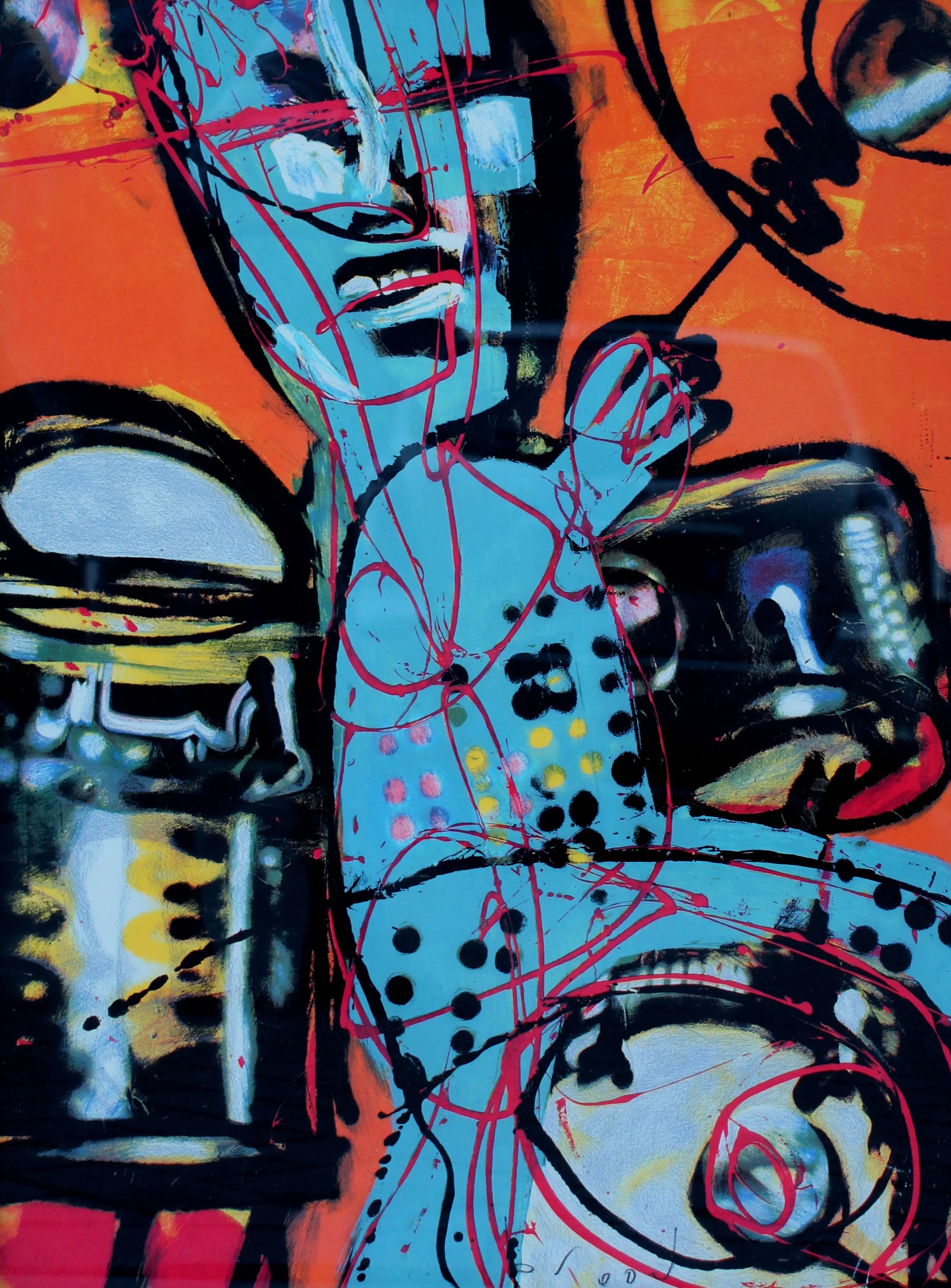 Herman Brood - Ingelijste zeefdruk: het bandje: de drummer - 1990