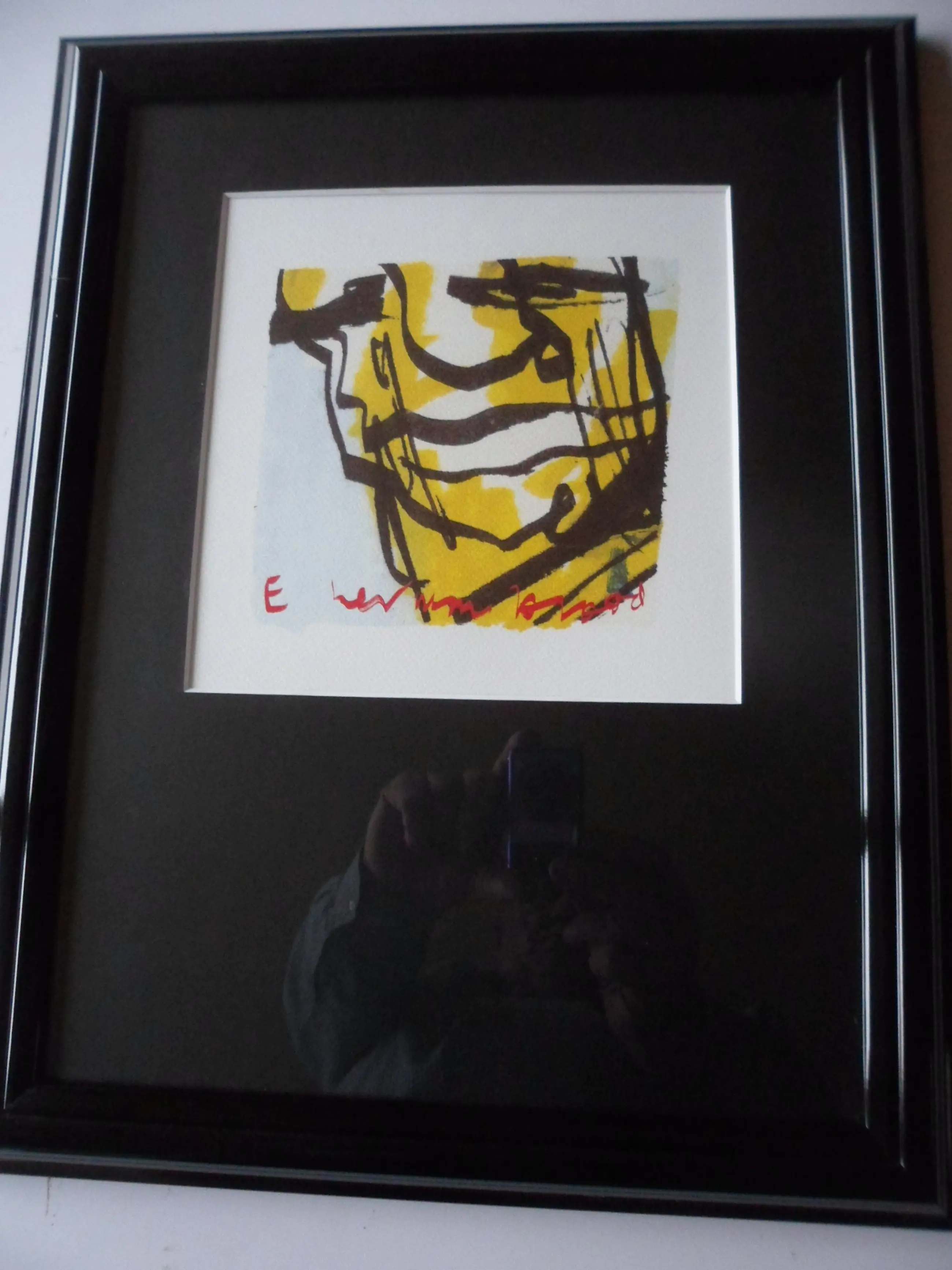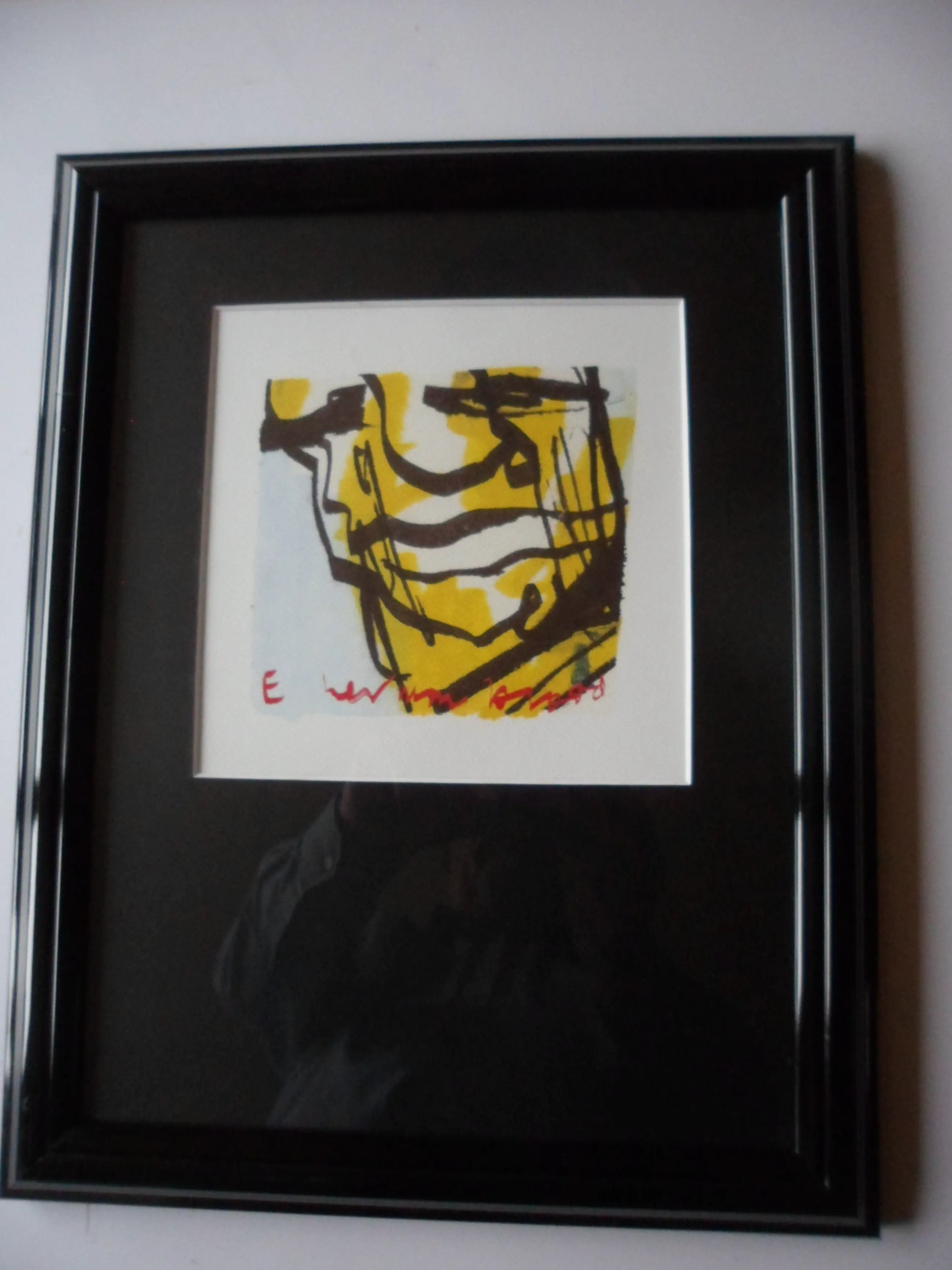 Ingelijste zeefdruk van Herman Brood. Afmetingen incl.lijst: H. 46 x B. 36cm. Afmetingen voorstelling: H.20 x B.20 cm. Het werk is in de druk gesigneerd.