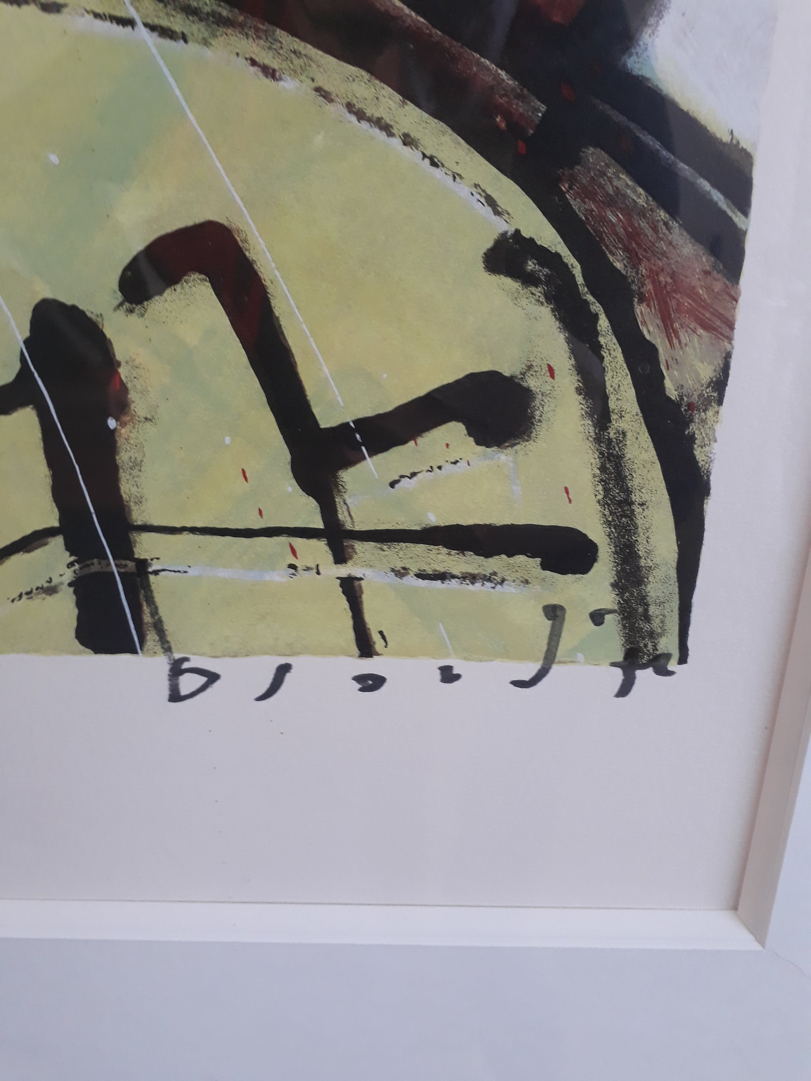 Ingelijst met dikke passe partout zodat er diepte onstaat.