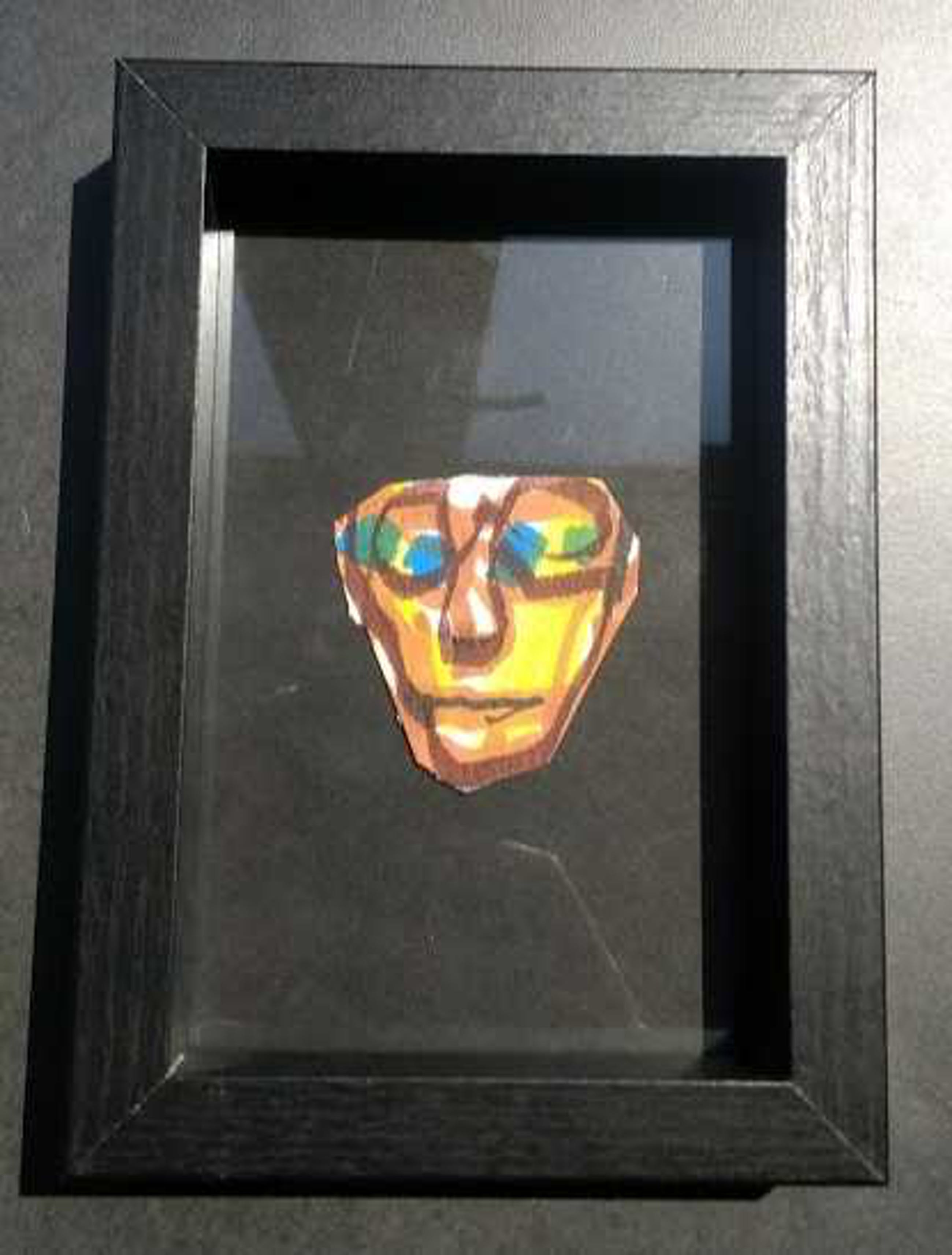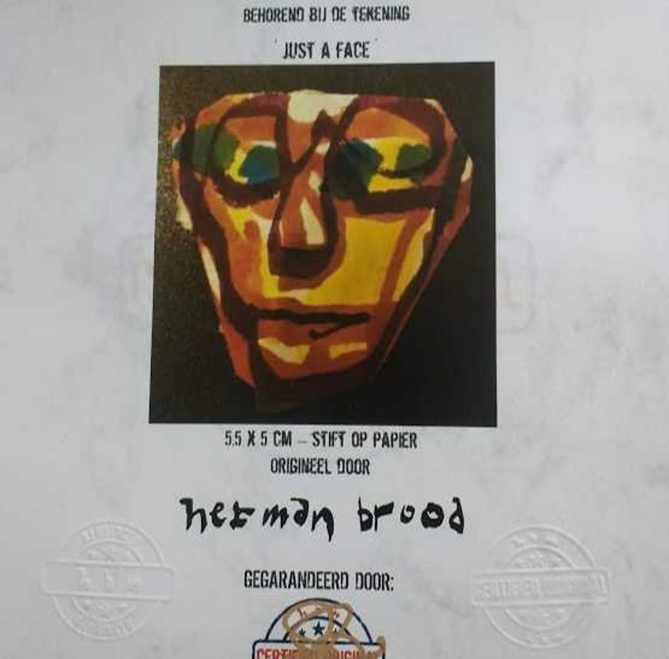 Originele tekening van Herman Brood Titel: just a face Techniek: kleurenstiften op tekenpapier Houten glazen lijst is inbegrepen Met certificaat van HB-M (Herman Brood Museum)