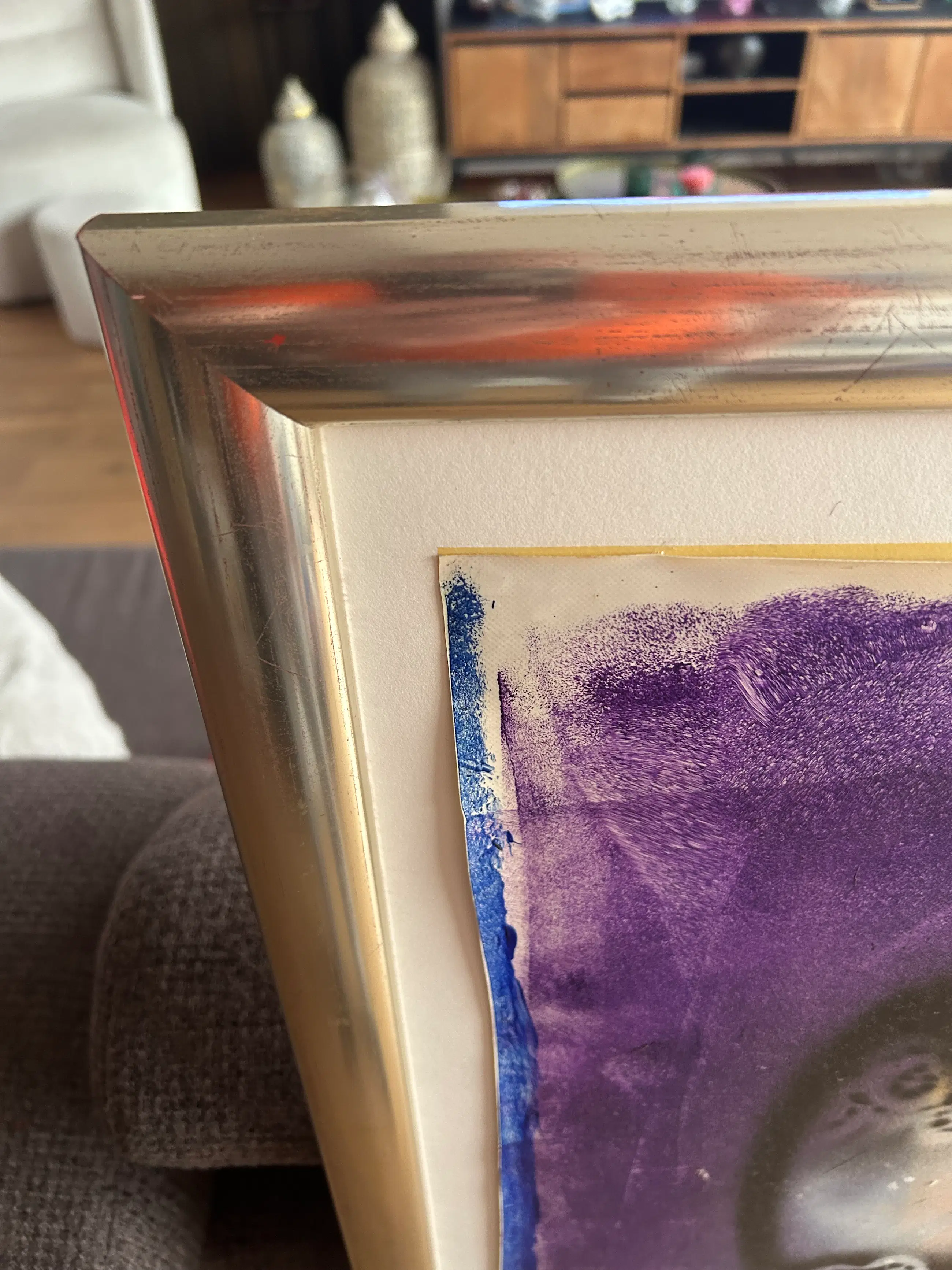 Het koningspaar is ingelijst zonder glasplaat waardoor de kleuren en rauwheid goed tot zijn recht komen. Er zitten zelfs nog wat opgedroogde grassprietjes onder de verf.