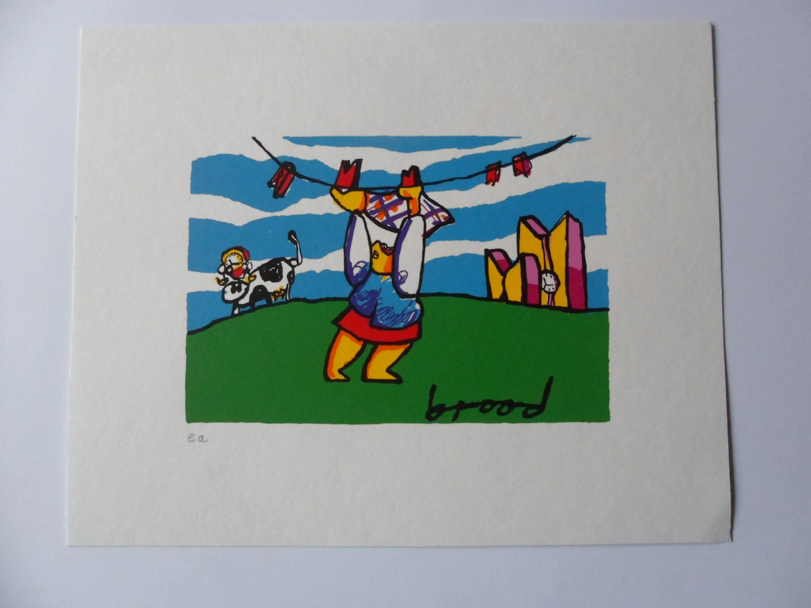 Leuke kleurenzeefdruk Wasvrouw van Herman Brood.