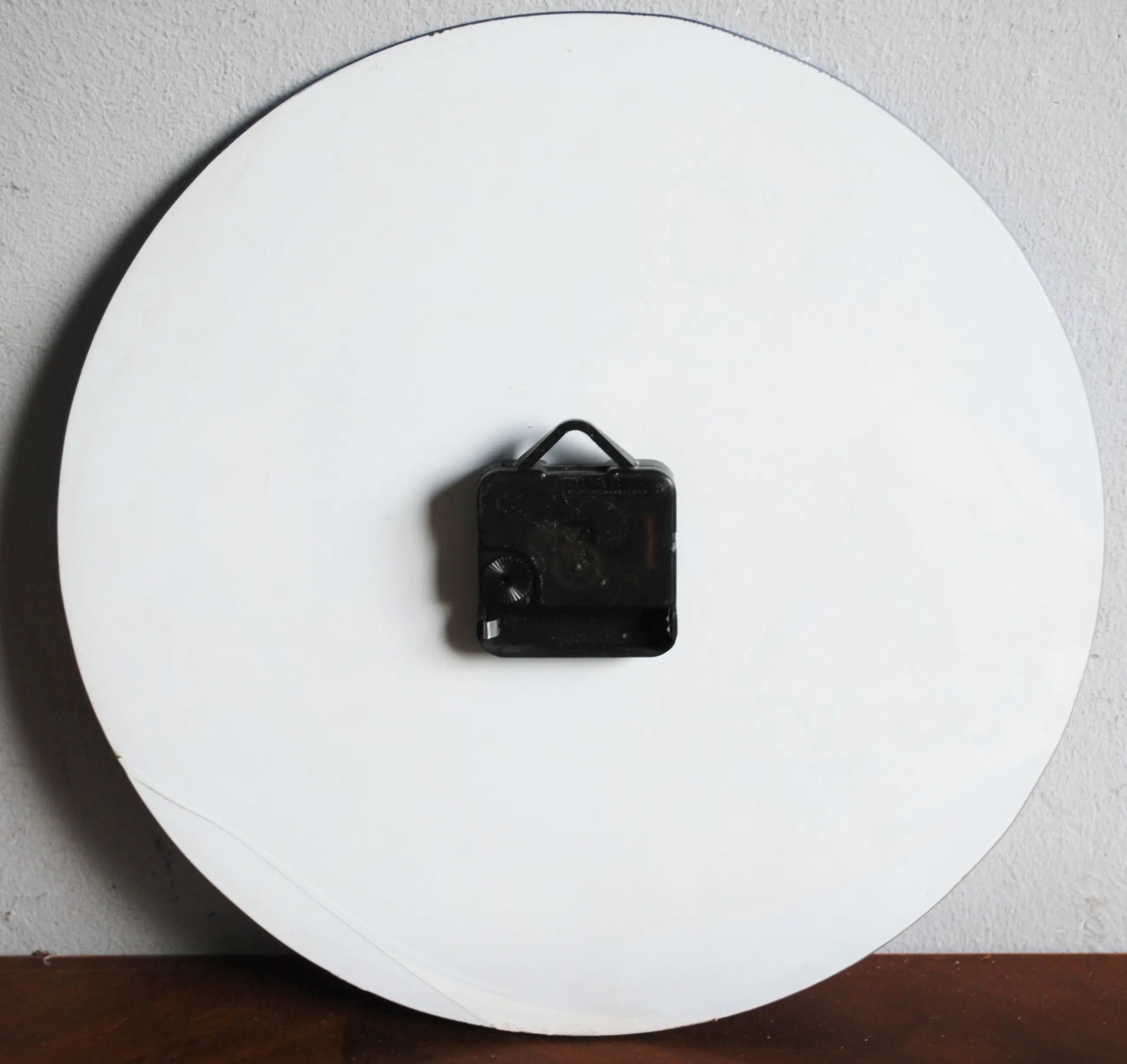 Klok, diameter 30 cm, in gebruikte maar goede, werkende staat. De wijzers zijn van zijn naam gemaakt.