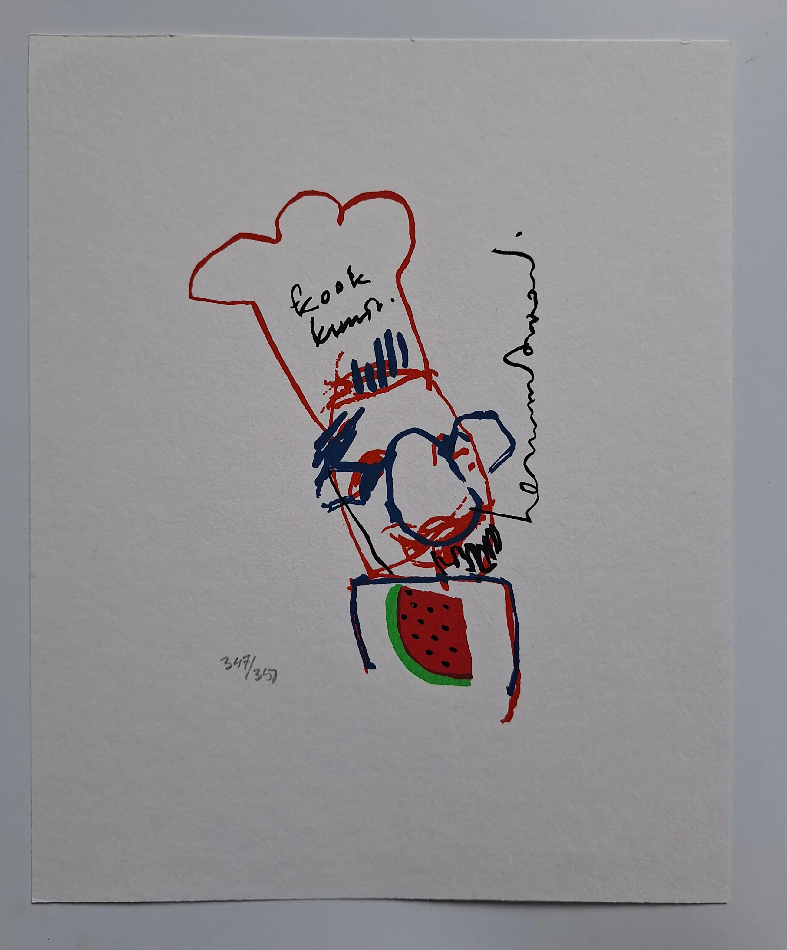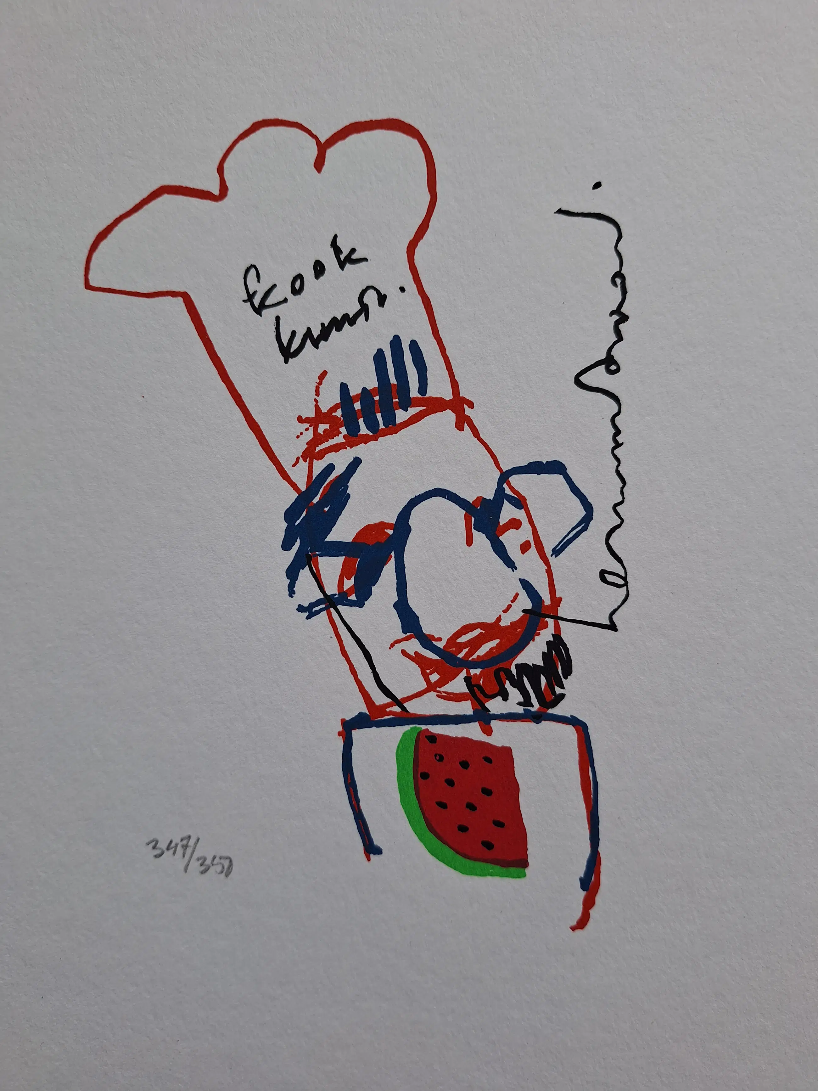Leuke zeefdruk van kunstenaar Herman Brood. Titel van het kunstwerk; 'Kookkunst' 30 x 24, 3 cm Oplage 347 van 357