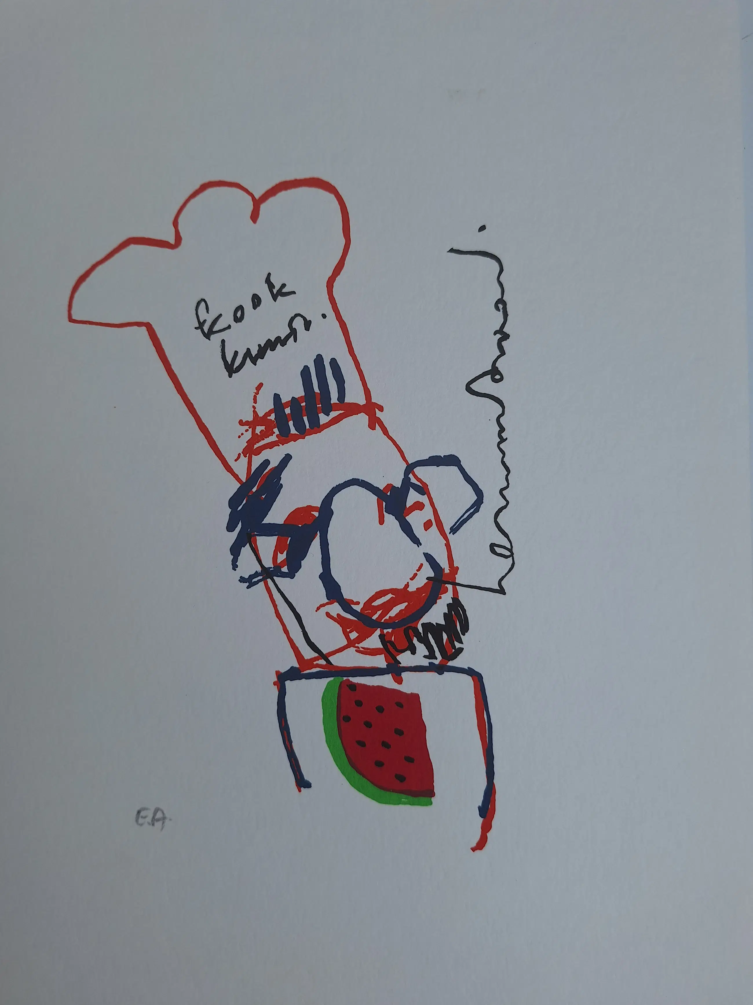 Prachtige zeefdruk Herman Brood " Kookkunst". EA (Épreuve d'Artiste) zijn proefdrukken voor de kunstenaar zelf In goede staat. 30 x 24,5 cm