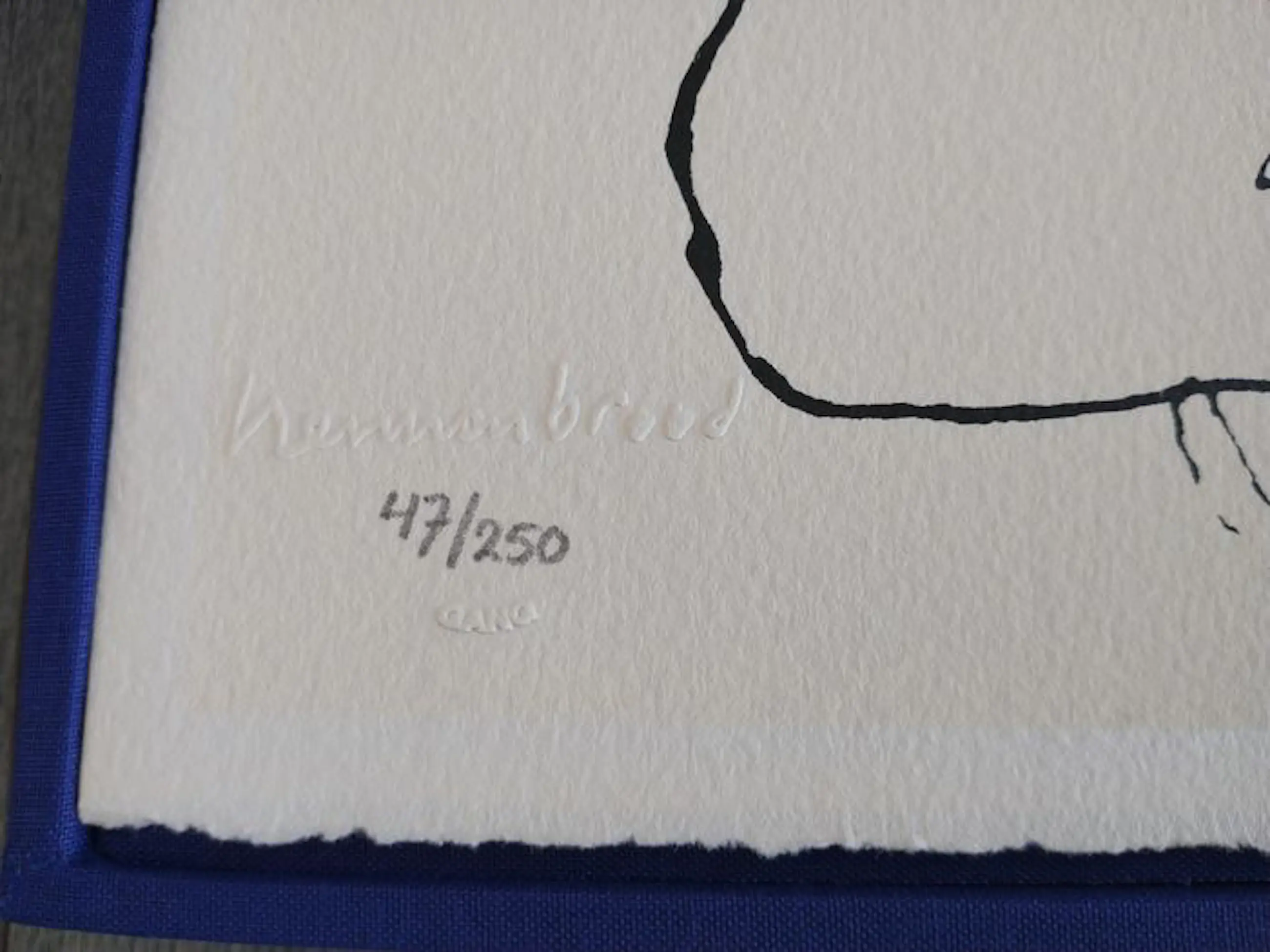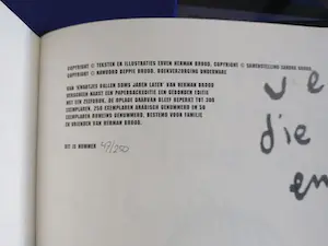 Zowel de zeefdruk als het boek zijn genummerd 47/250 en de zeefdruk is op de achterzijde gesigneerd door Xandra Brood.