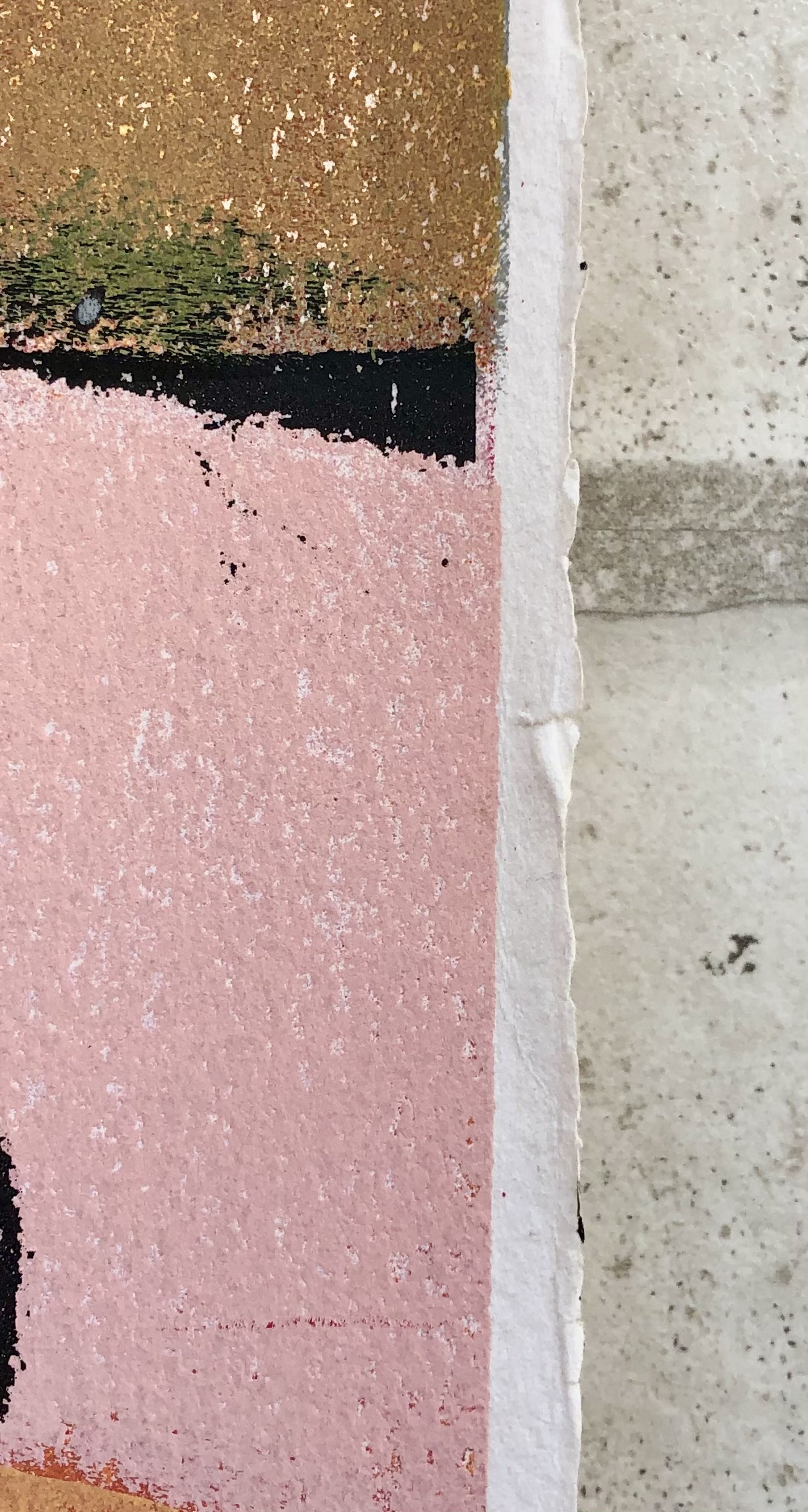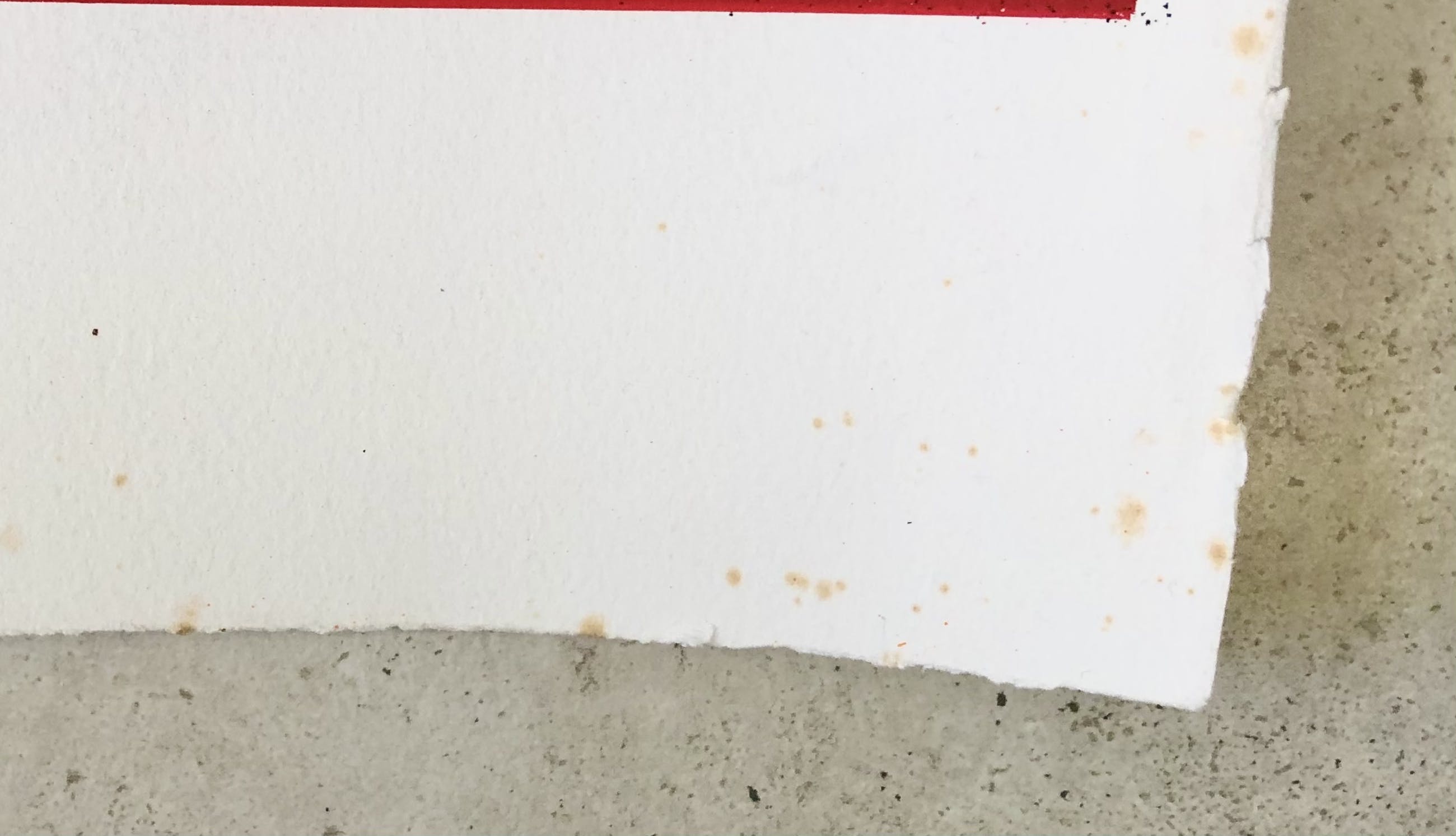 De zijkanten vertonen lichte beschadigingen, kleine bruine vlekjes en 2 scheurtjes zoals te zien is op de foto's. Na inlijsten met passe-partout zijn deze beschadigingen niet meer zichtbaar.