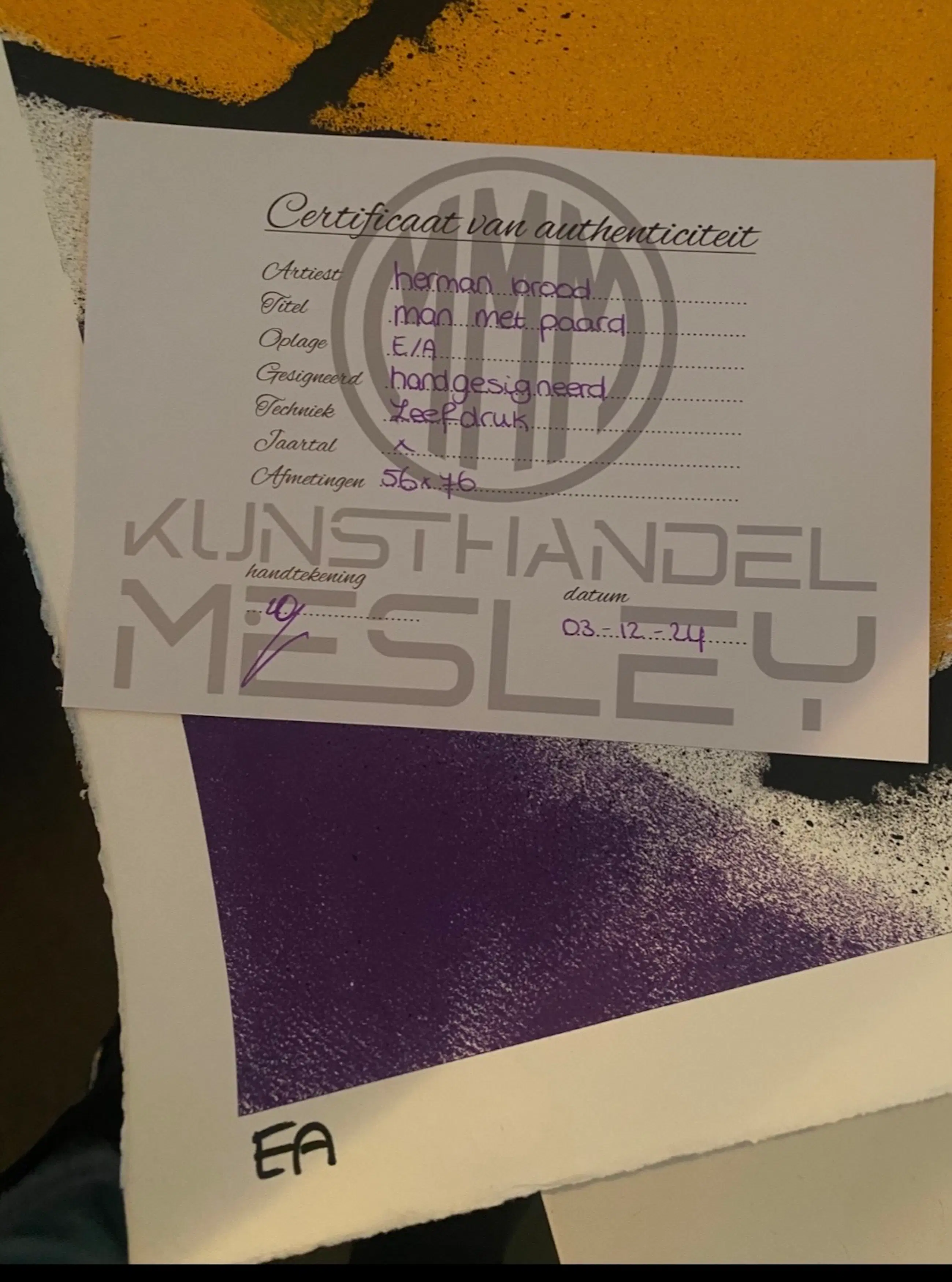 Man met paard zeefdruk ea met certificaat