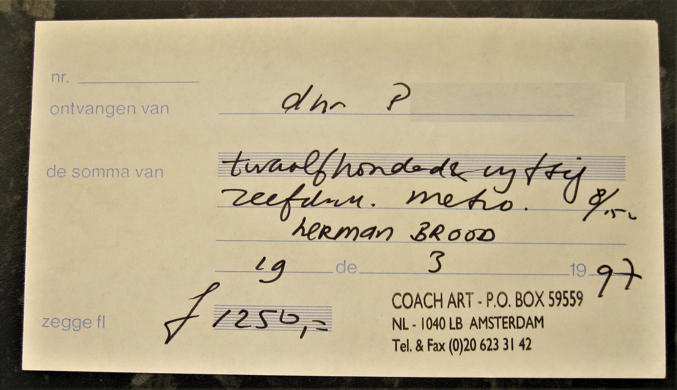 Professioneel ingelijst met passe-partout en bijpassend gekleurde rand door de Brood Gallery. Persoonlijk aangeschaft bij de Herman Brood Gallery boven Dante in Amsterdam, in 1997. Compleet met originele aanschafbon, in mijn naam.