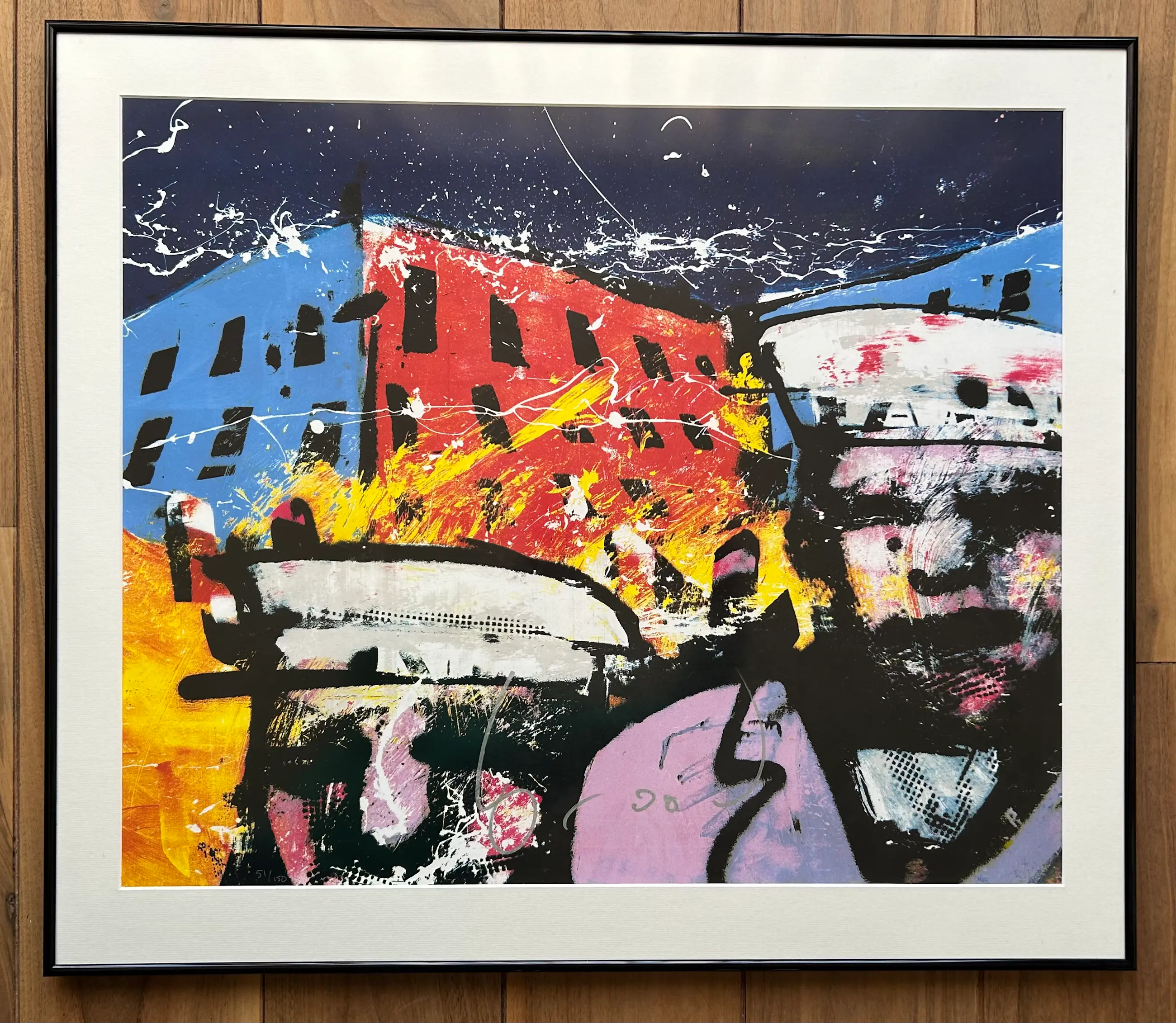 Het betreft een genummerd 51/150 exemplaar en het werk is uiteraard handgesigneerd met zilveren marker.