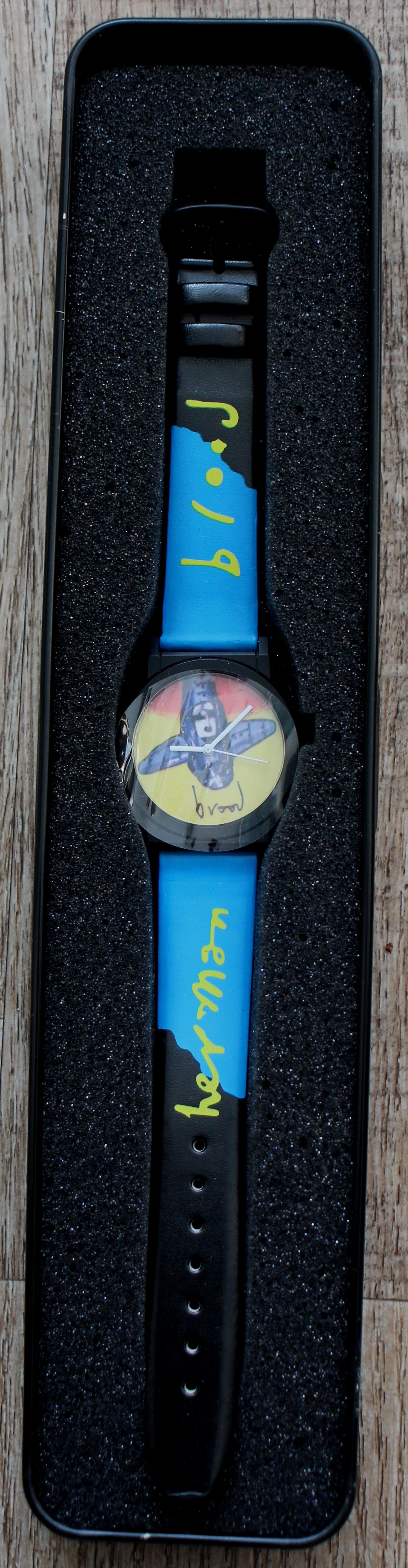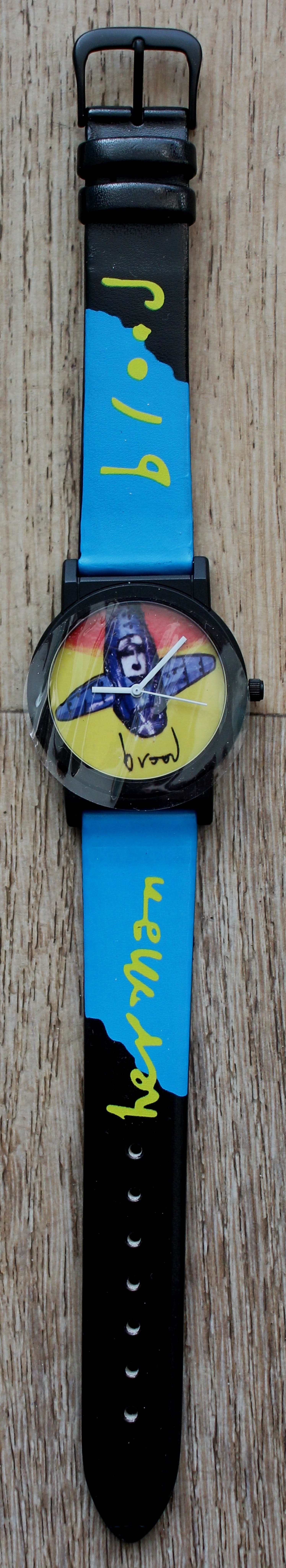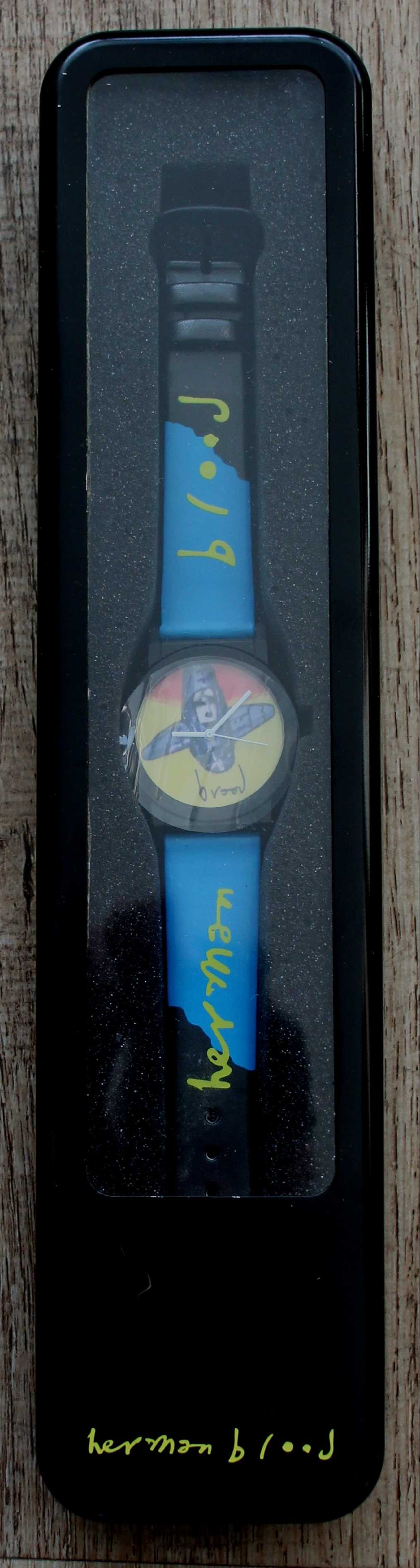 Nieuw horloge van Herman Brood. In de druk gesigneerd, voor-en achter in het ijzer gesigneerd door de kunstenaar. De authenticiteit van het aangeboden werk wordt volledig gegarandeerd. Een certificaat van echtheid kan, op aanvraag, worden gemaild.