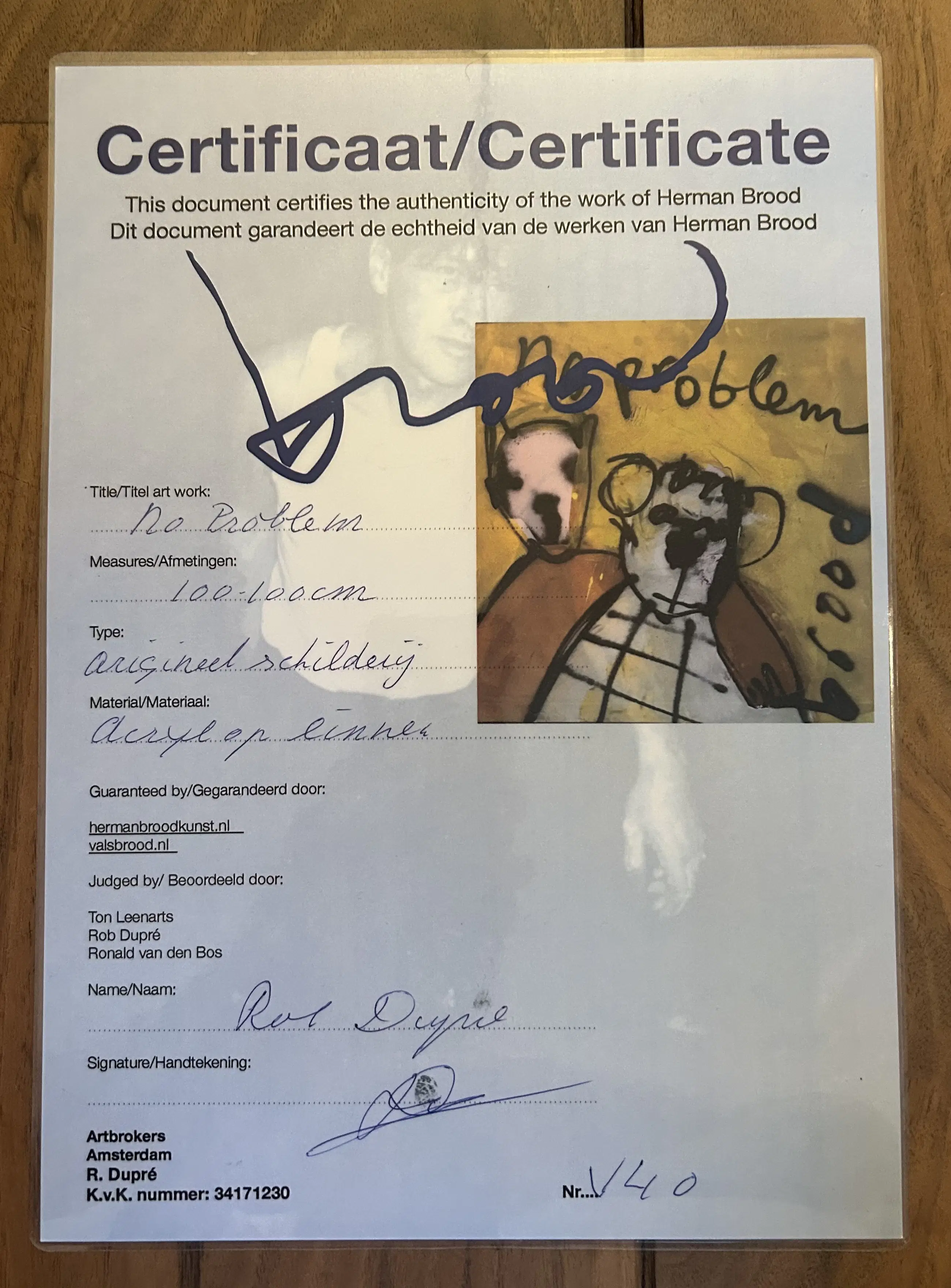 Het werk is voorzien van een certificaat van echtheid alsmede van een taxatierapport.