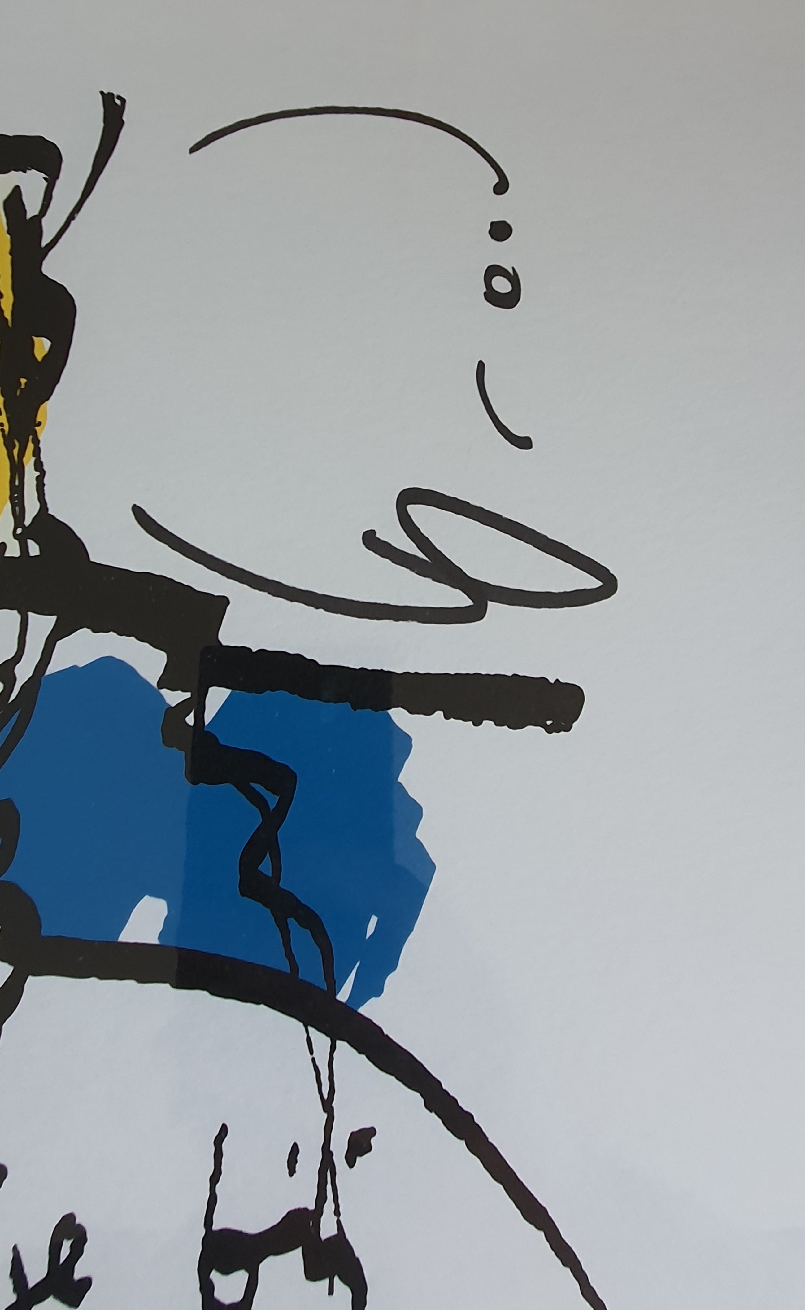 Zeefdruk van Herman Brood met de titel of je bij God was. Keurig ingelijst