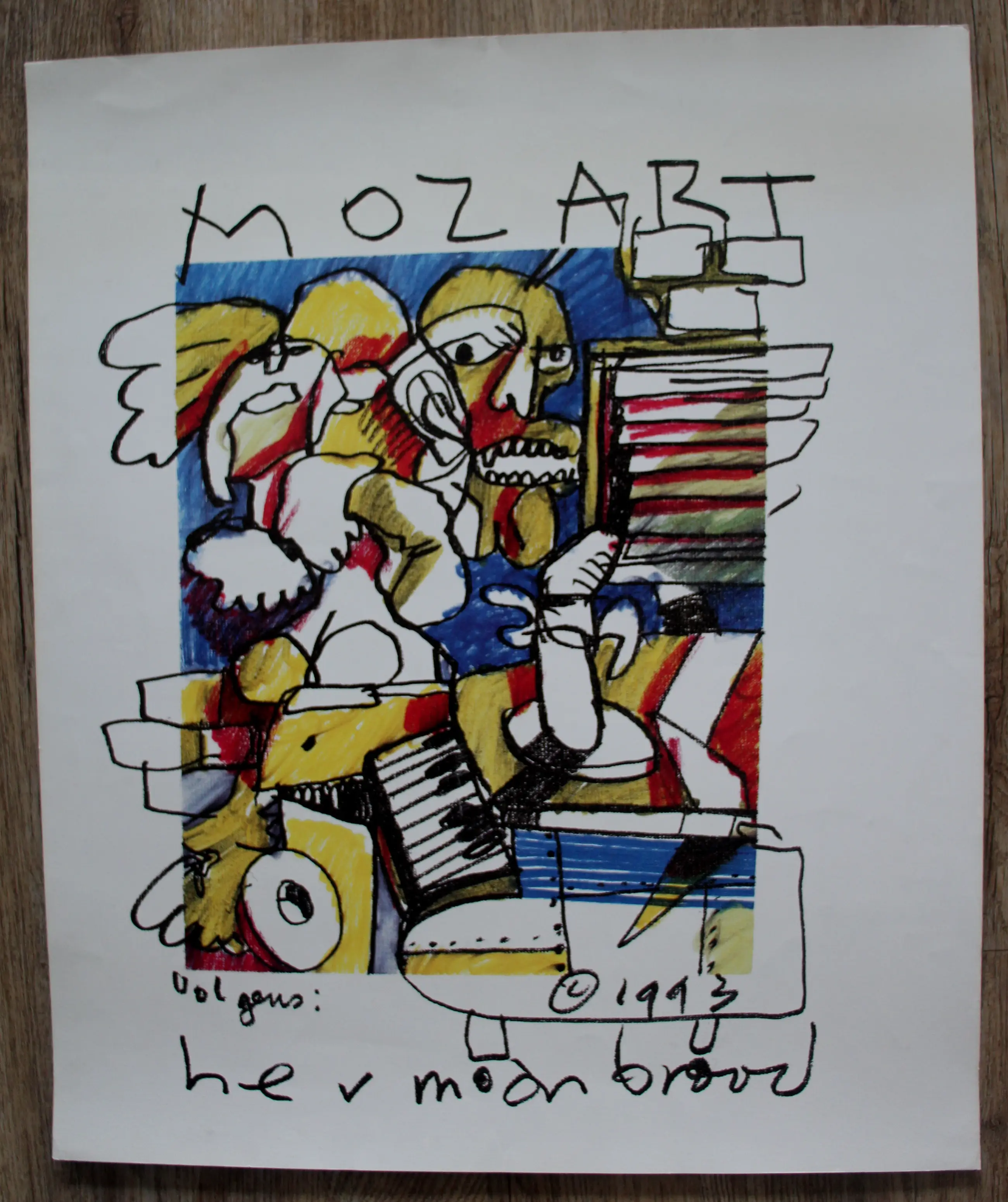 Offset litho van Herman Brood. Titel: Mozart. Jaar: 1993. Afmetingen werk: H60 x b50 cm. Afmetingen voorstelling: H38 x b30cm.