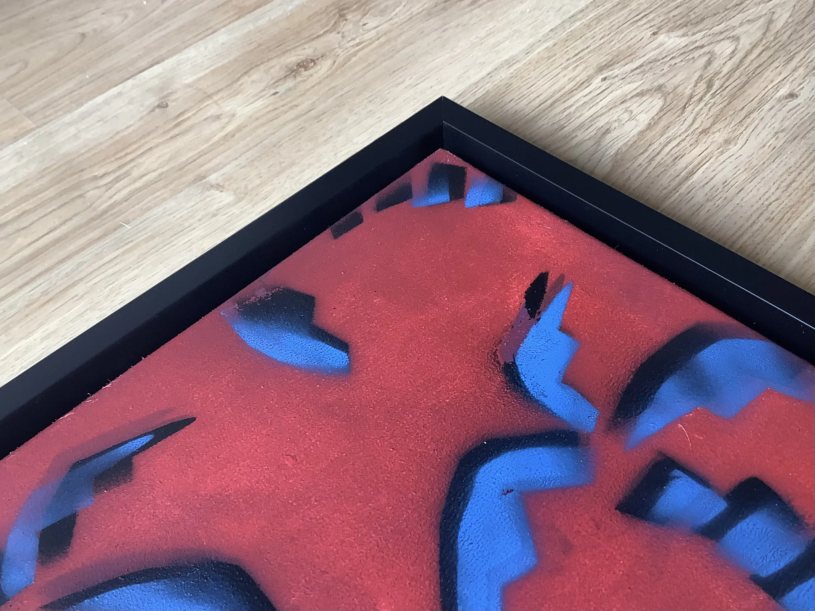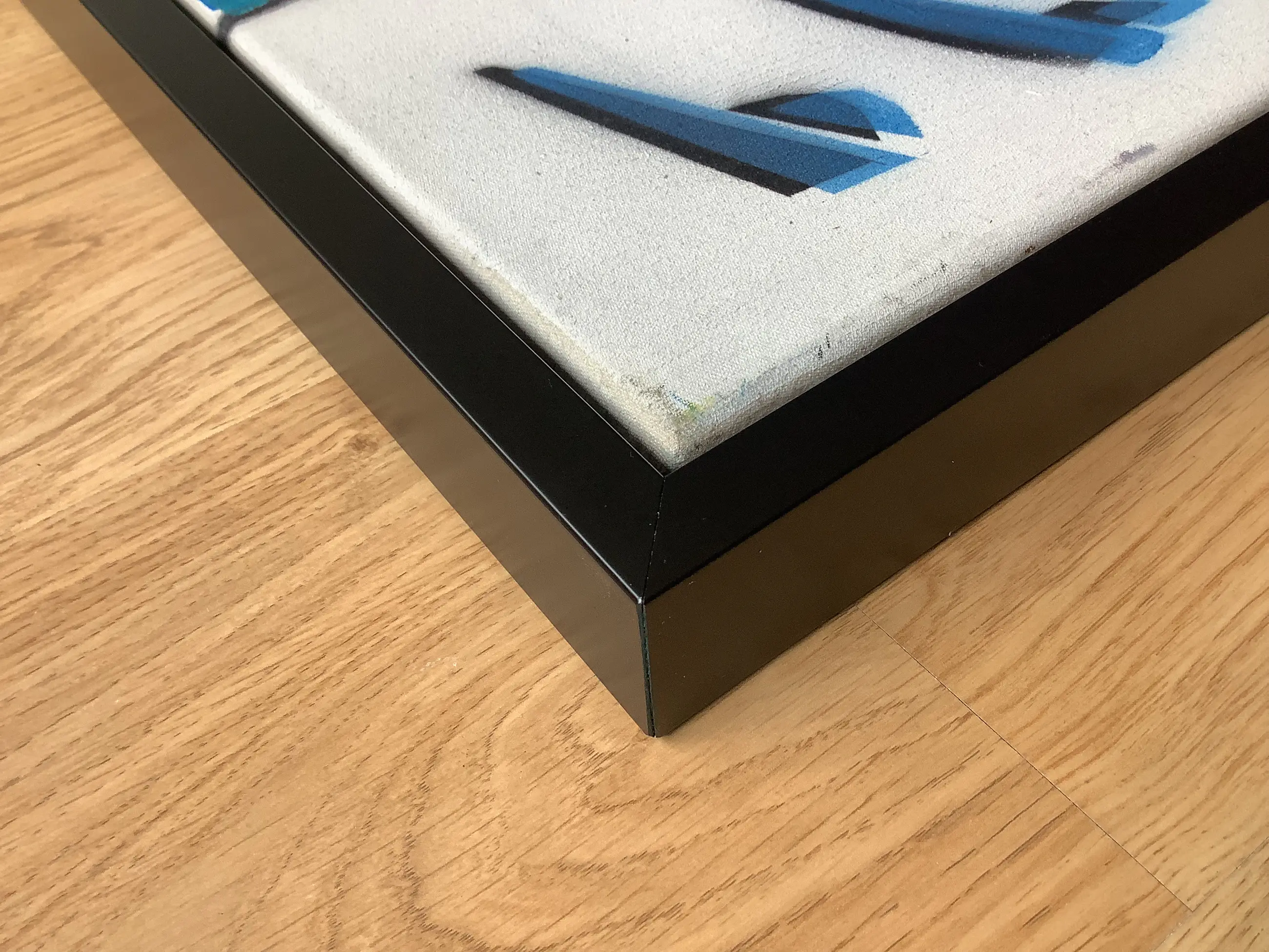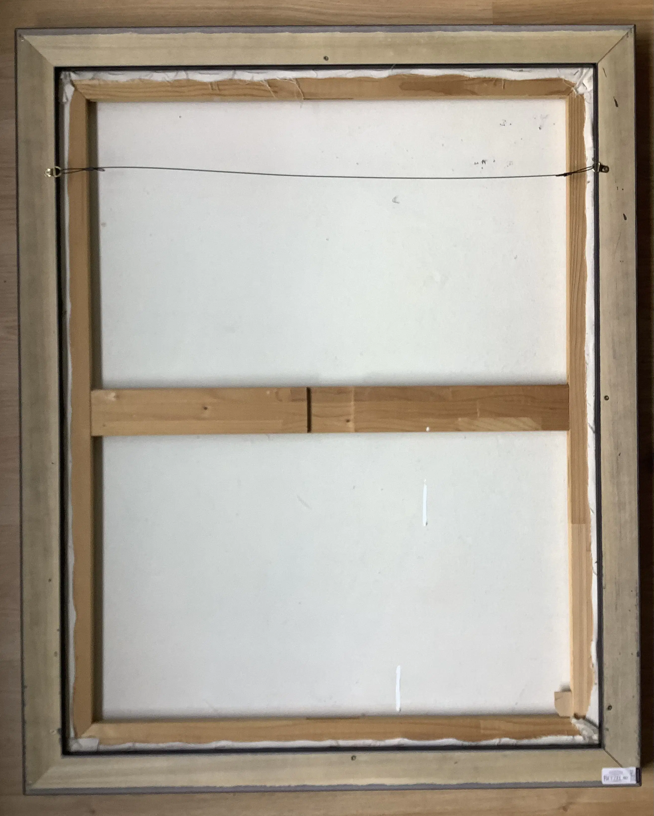 Totale grootte lijst: 106 cm x 86 cm. Betreft zwarte baklijst in uitstekende staat. Hoogte lijst 4,0 cm en 2,0 cm breed. Het schilderij is een echte eye - catcher, kan zo aan de muur.