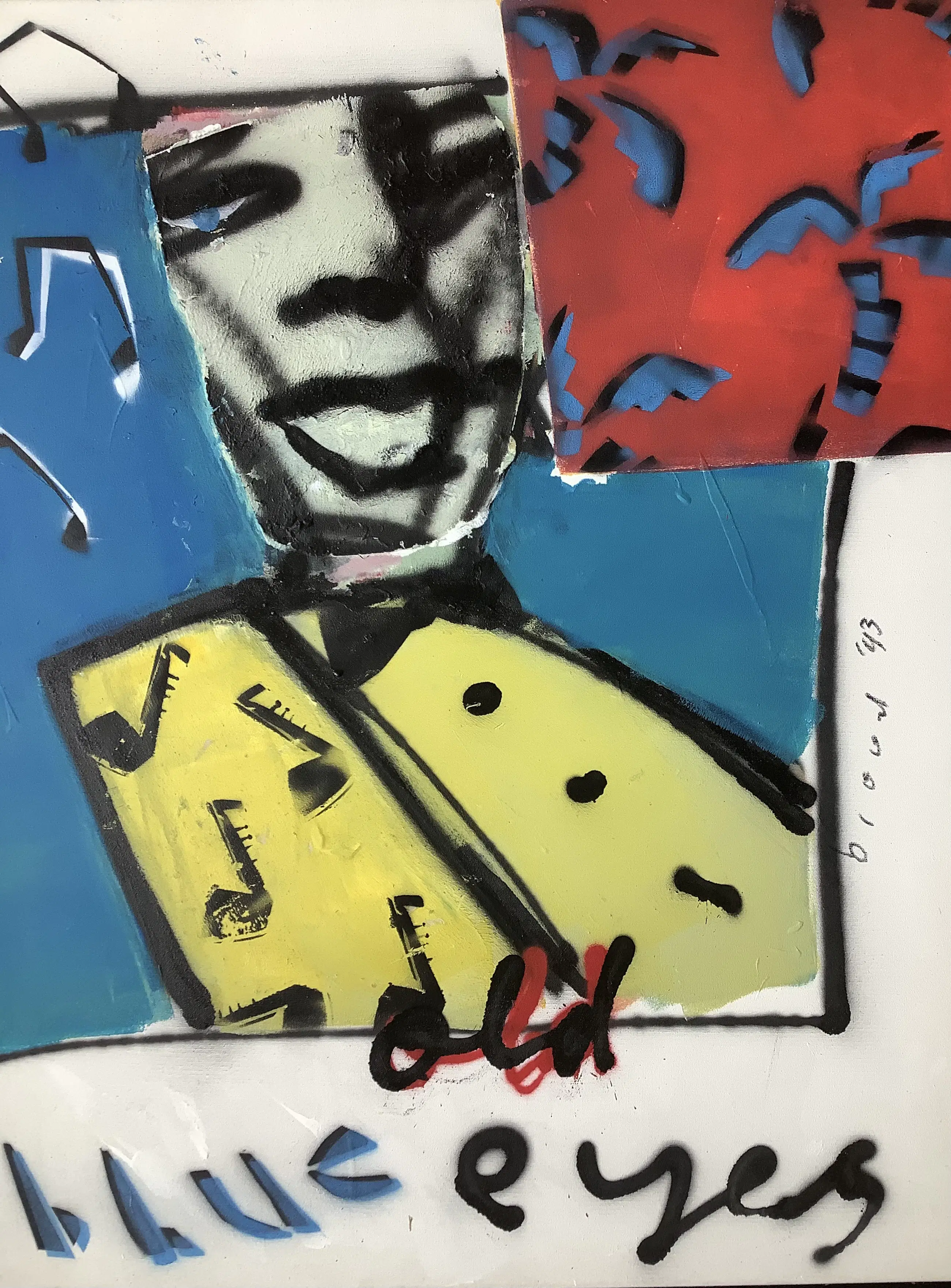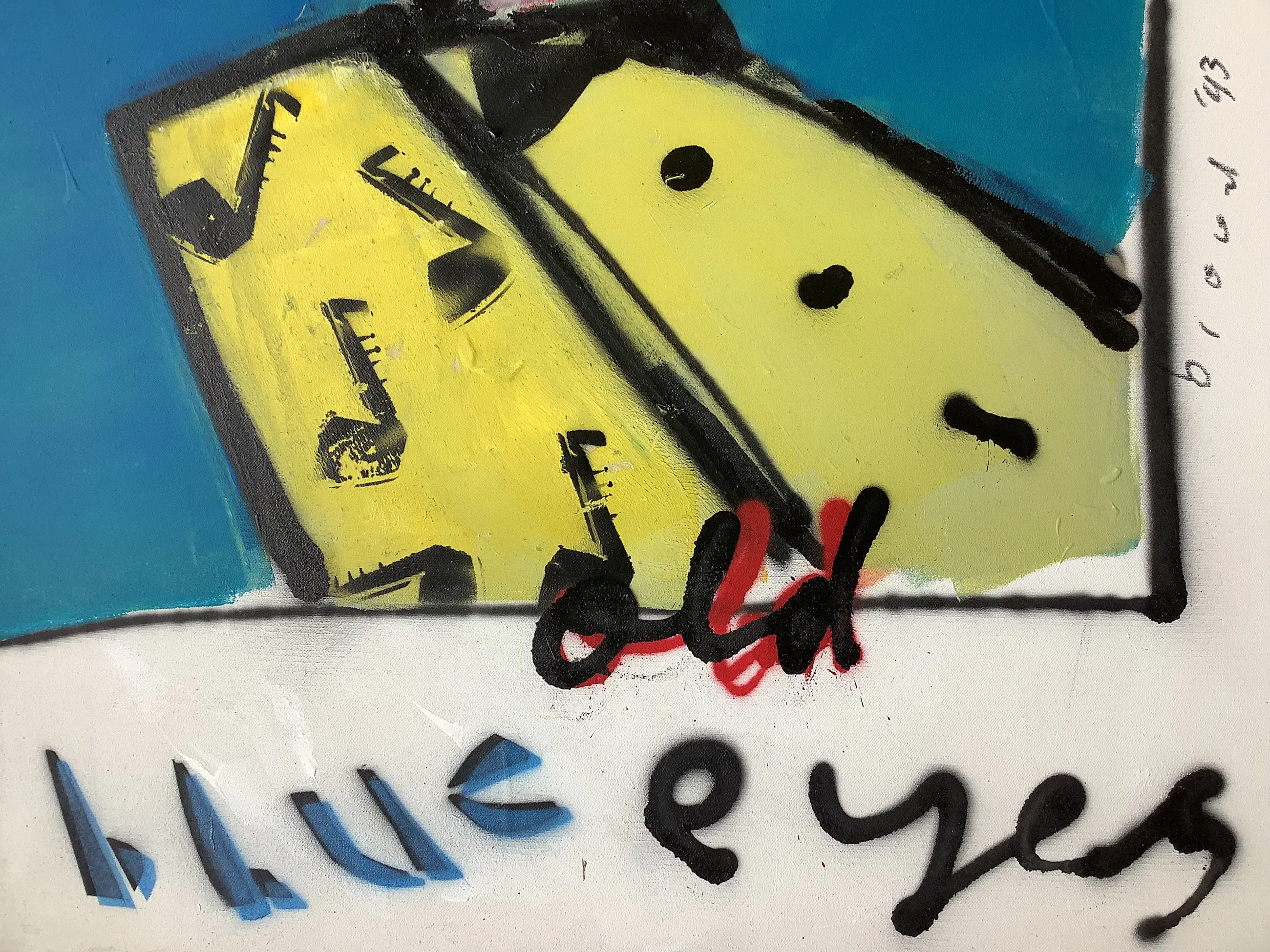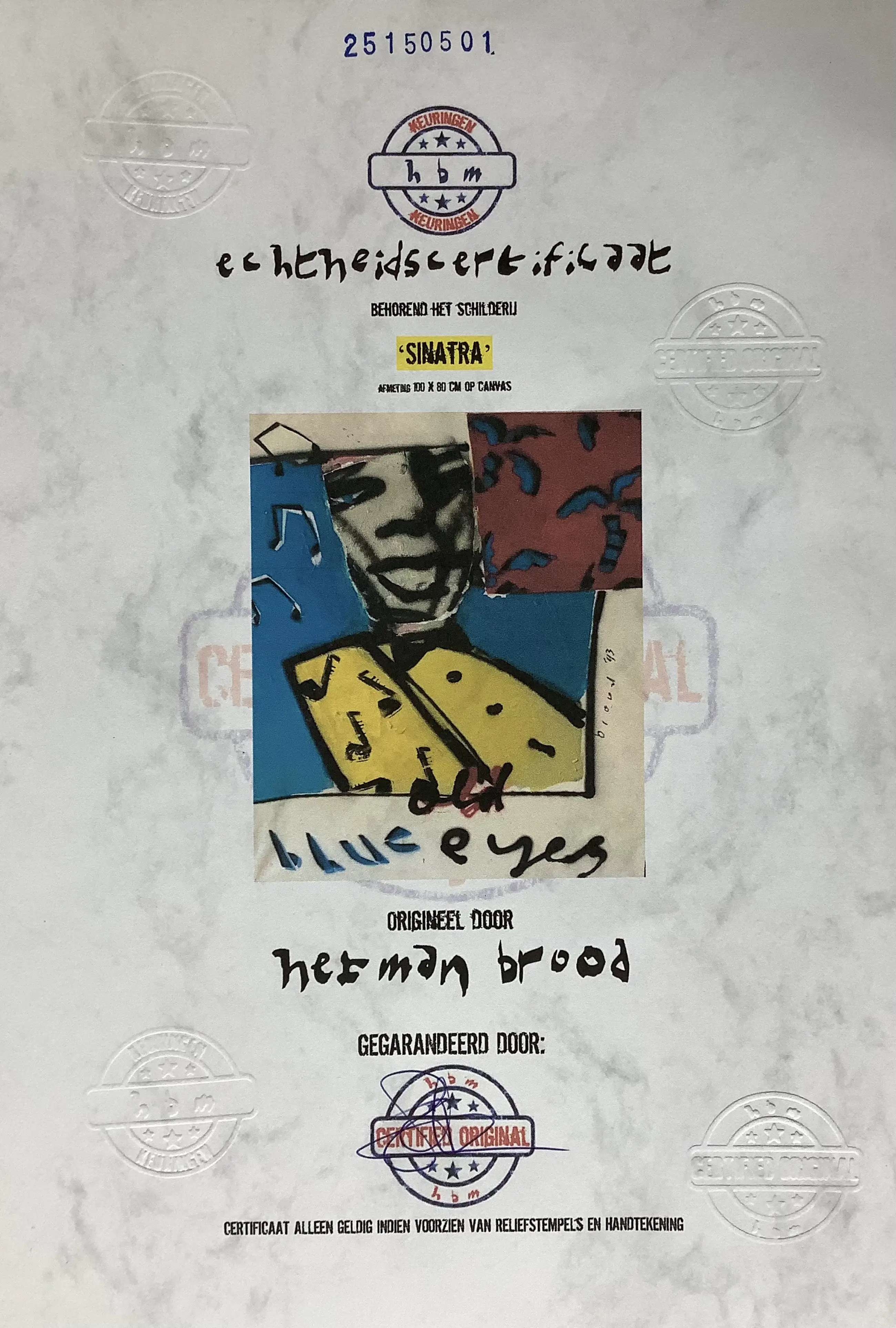 Naast “The Voice” had Frank Sinatra nog een andere bijnaam namelijk Old Blue yes. Dit schilderij heeft Herman Brood gemaakt om zijn bewondering voor Frank Sinatra uit te drukken.