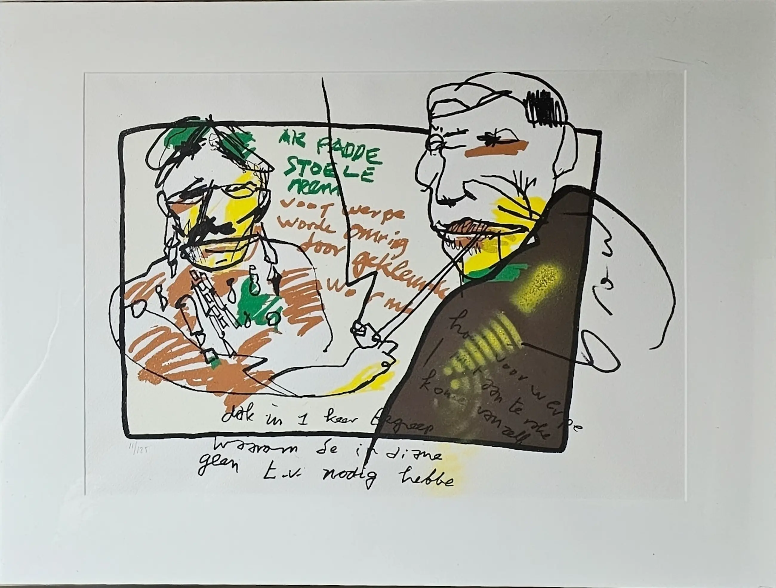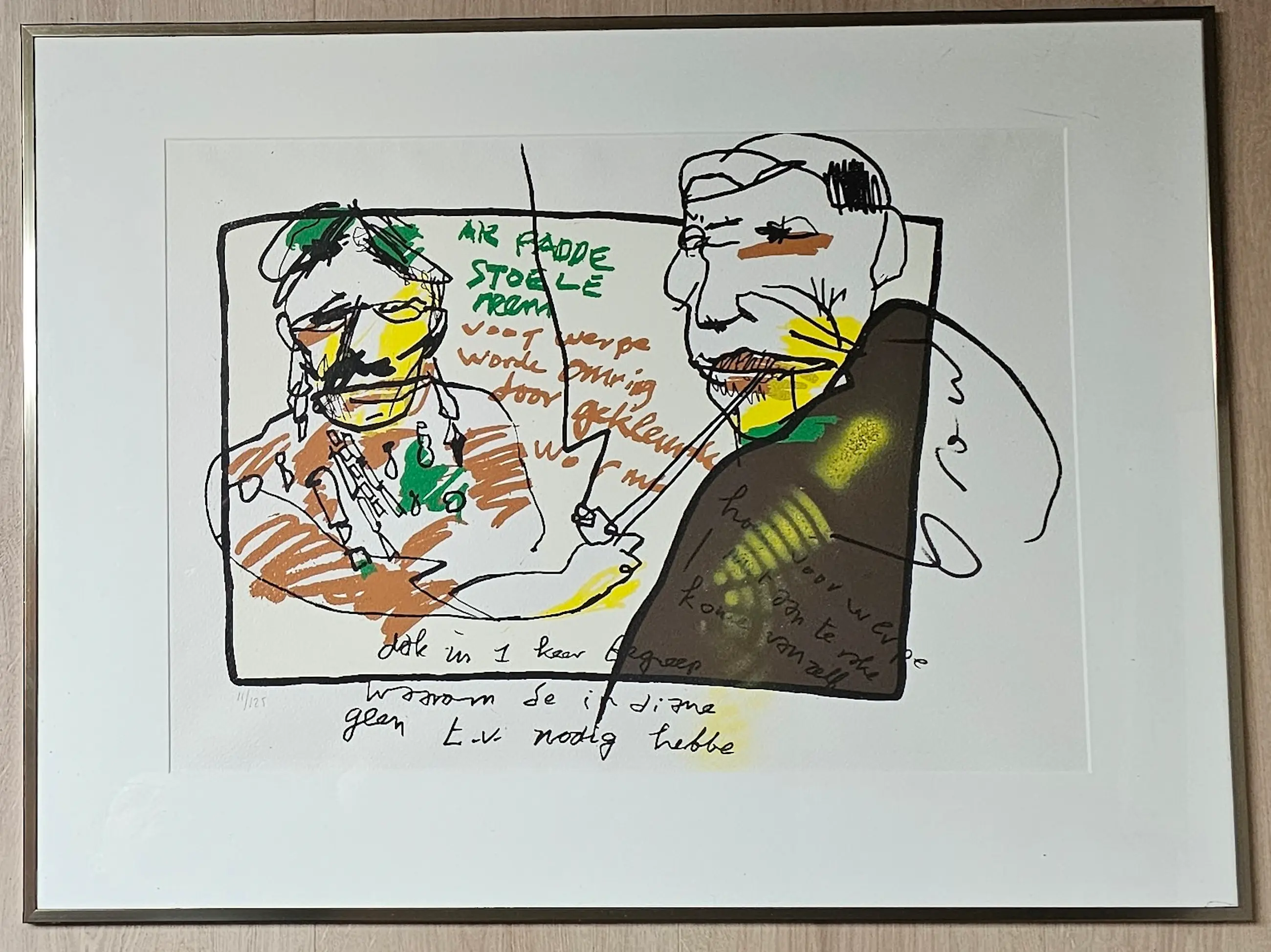 Ingelijste handbewerkte zeefdruk van Herman Brood.