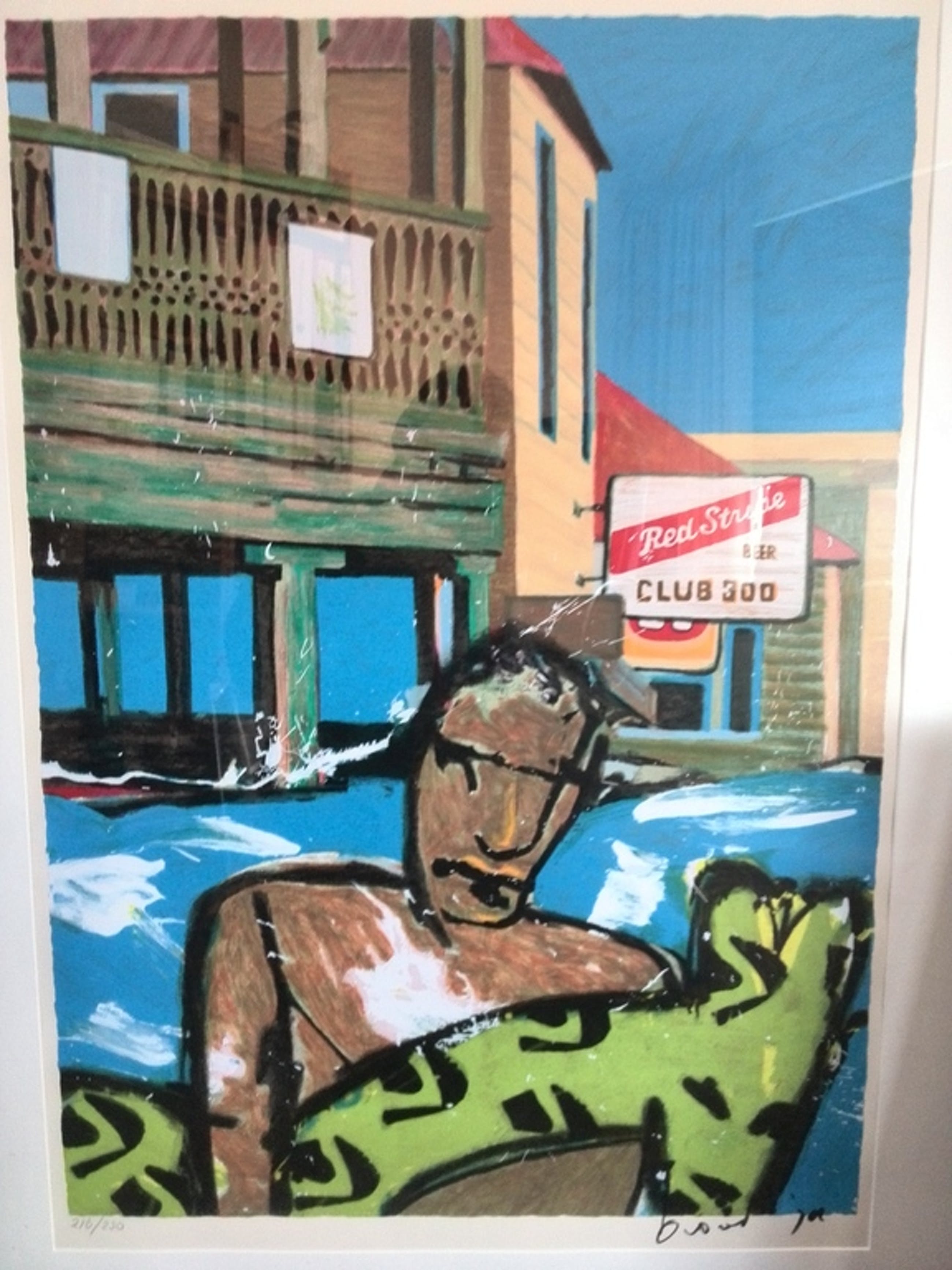 Prachtige zeefdruk van Herman Brood nummer 216 van 250 mooi ingelijst met mat alulijst en mooie paspartout, formaat van dit mooie grote schilderij is 110 x 80 cm. door de meester ( Herman Brood ) hand gesigneerd.