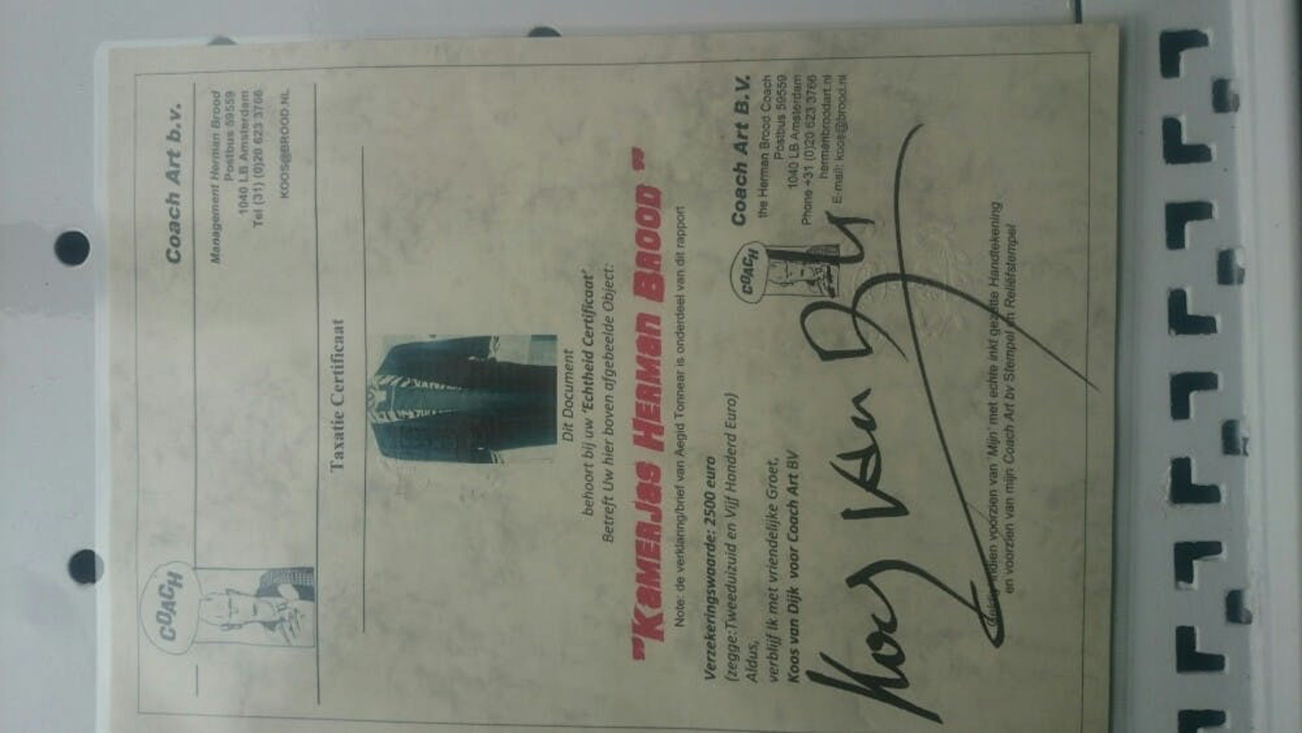 Uniek item een door Herman Brood gedragen kamerjas. Deze Is voorzien van certificaat Coach Art en taxatie certificaat van Coach Art verzekerde waarde van 2500 euro. Tevens een echtheidsverklaring van zijn vriend Aegid Tonnaer.