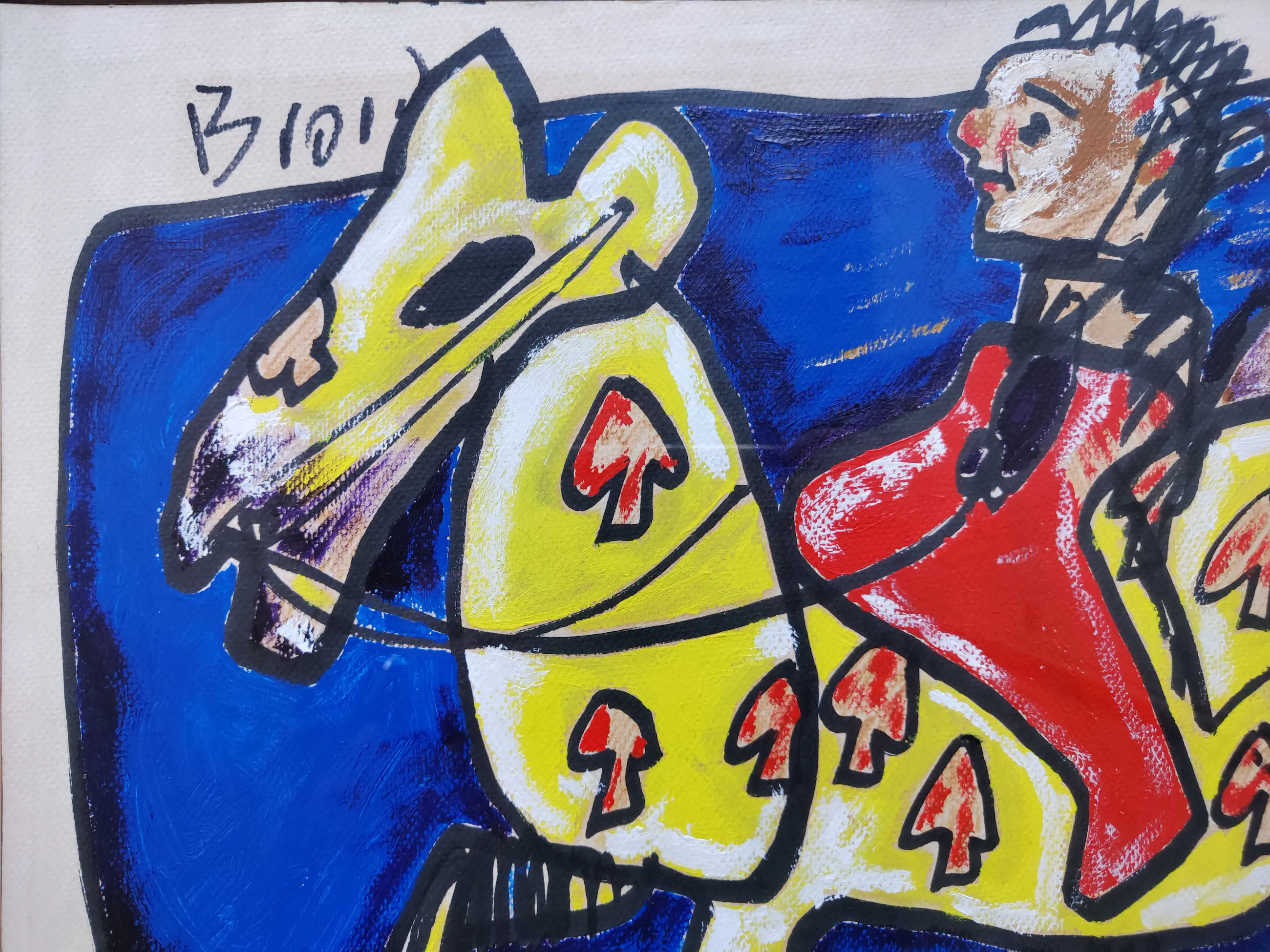 Stift & acrylverf op papier, een weinig door Herman Brood gebruikte techniek. Dit unieke werk is in 1991 door hem gemaakt in het Spaanse Cadaques.