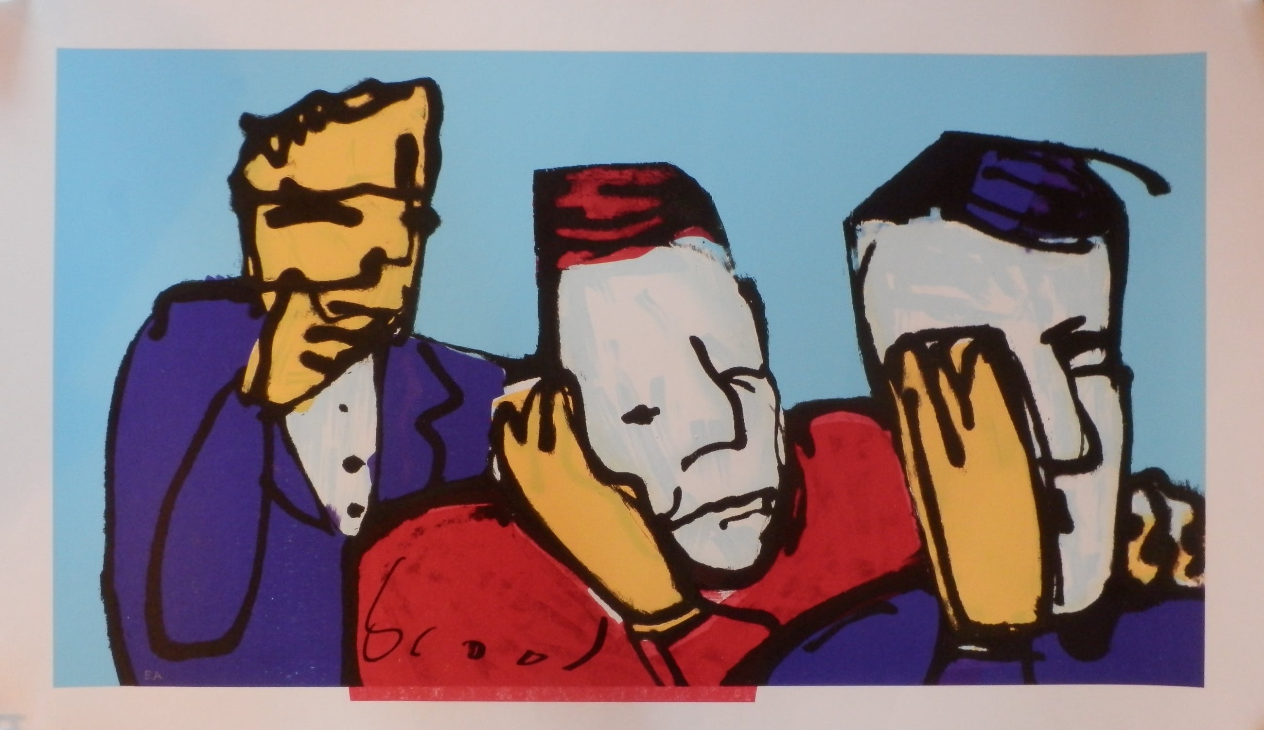 Fraaie proefzeefdruk van Herman Brood. Afmeting blad 120x 76 cm in zeer goede staat. Handgesigneerd EA exemplaar. LET OP !! In het midden boven de handtekening komt de rode band naar beneden.Tevens zitten in het paarse jasje witte stipjes. Herman Brood was er tevreden over want hij heeft het werk tenslotte gesigneerd.