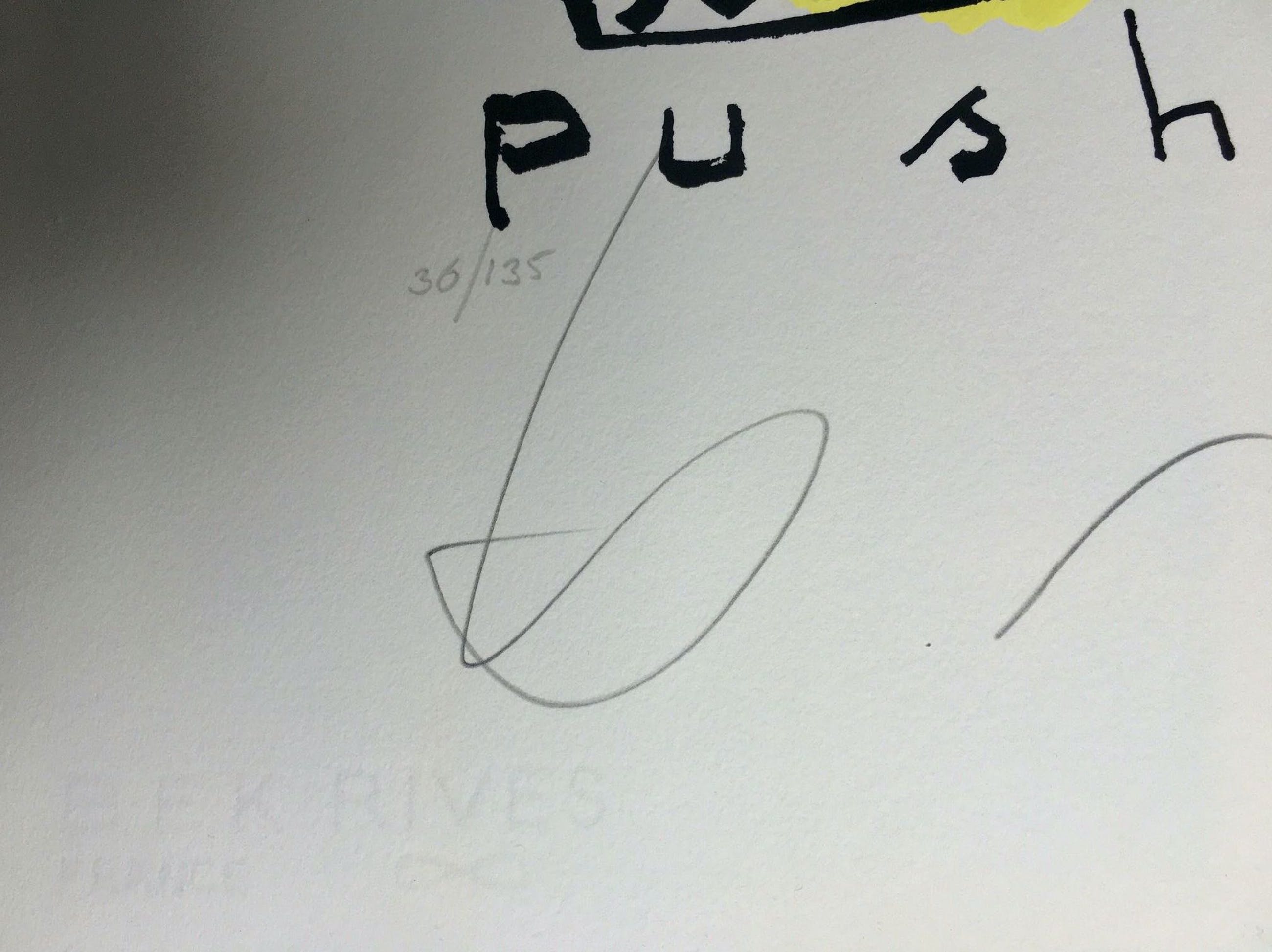 De zeefdruk is hand gesigneerd en gedrukt op papier met watermerk.