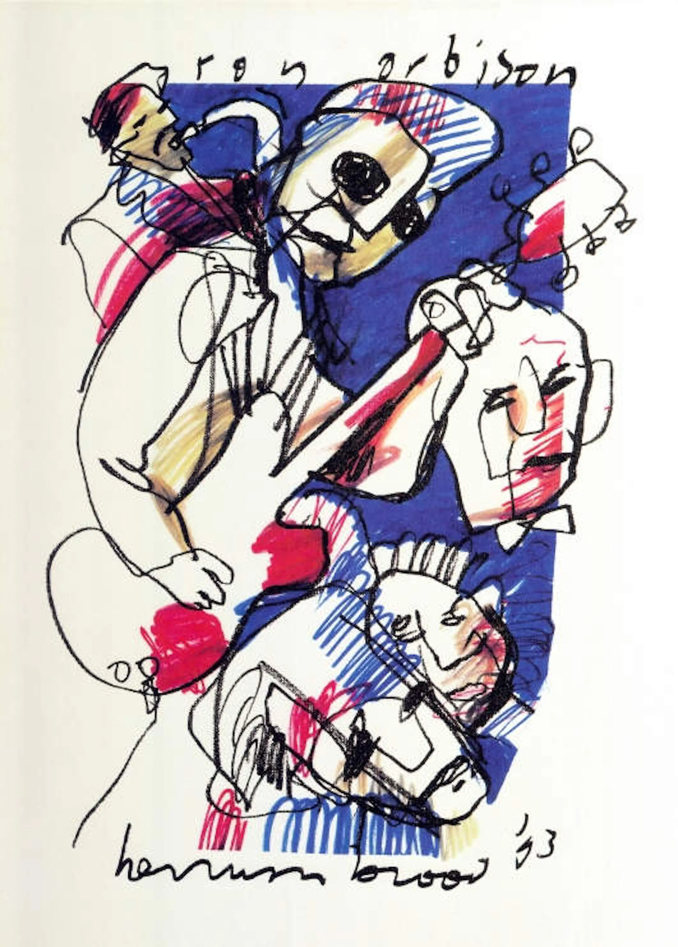 Bekende prent van Herman Brood uit de Free Record Shop popserie (1993). Offset druk op papier, in de druk gesigneerd, getiteld en gedateerd. In zeer goede conditie.