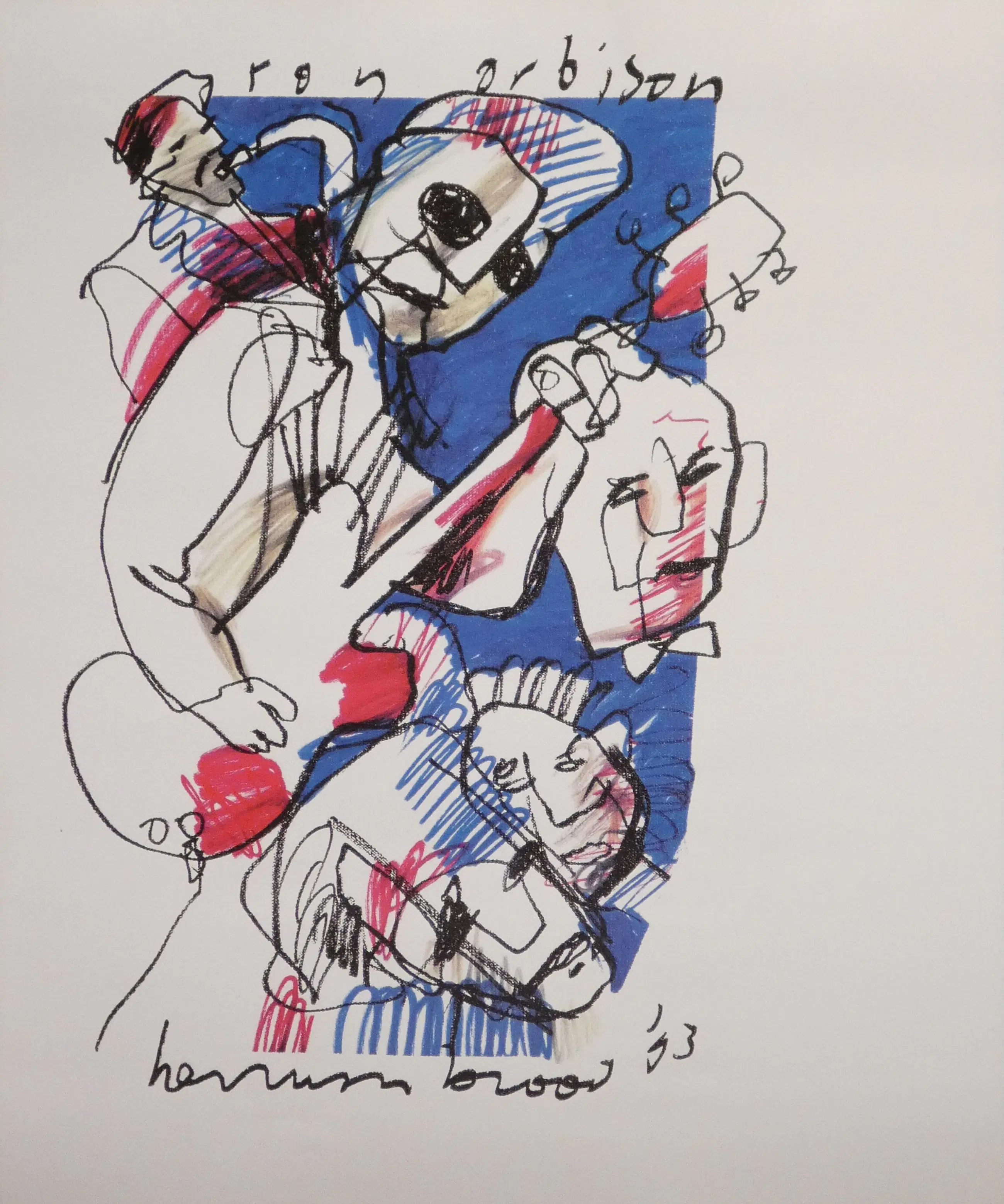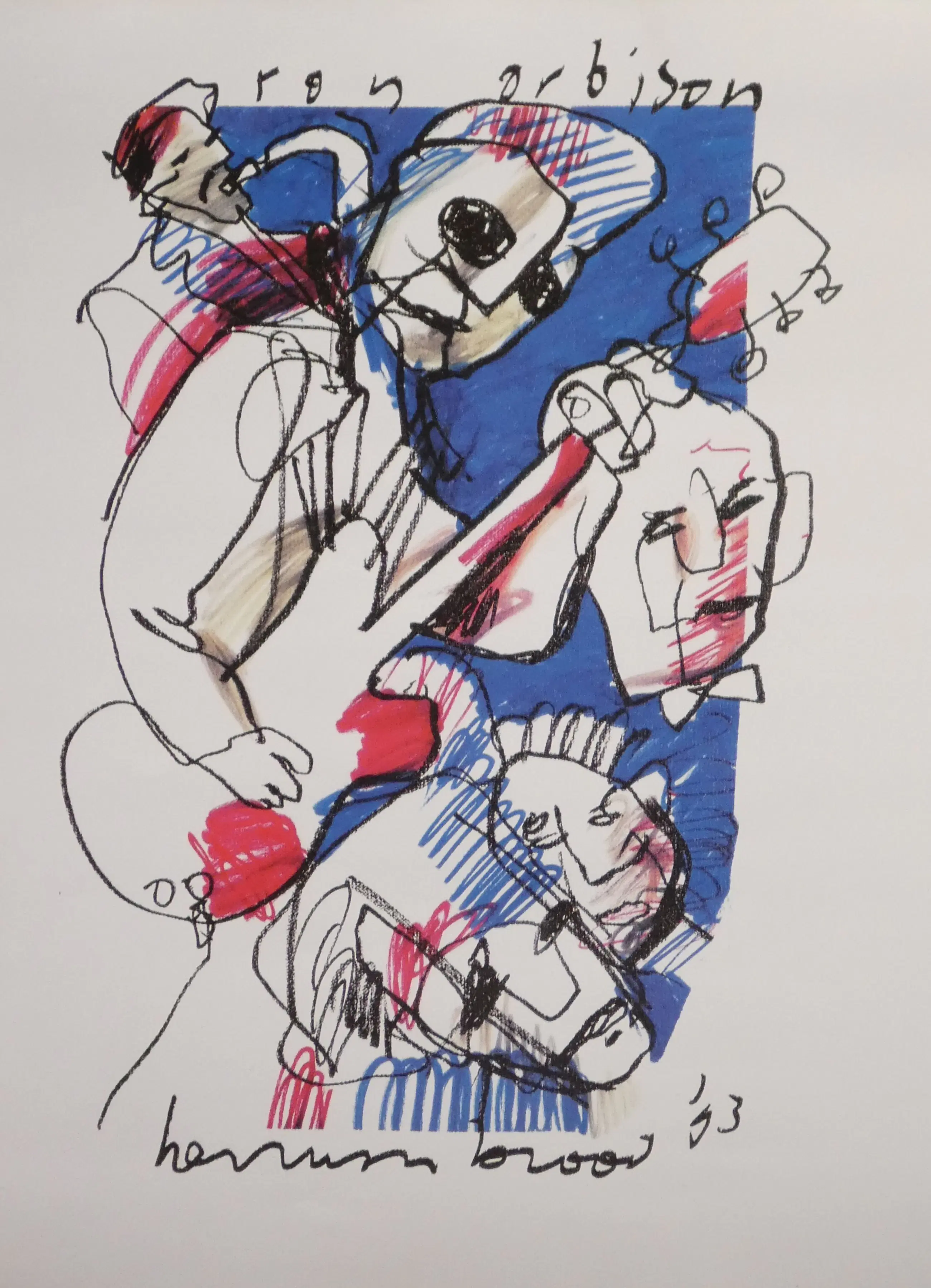 Bekende prent van Herman Brood uit de Free Record Shop popserie (1993). Offset druk op papier, in de druk gesigneerd, getiteld en gedateerd. In goede conditie.
