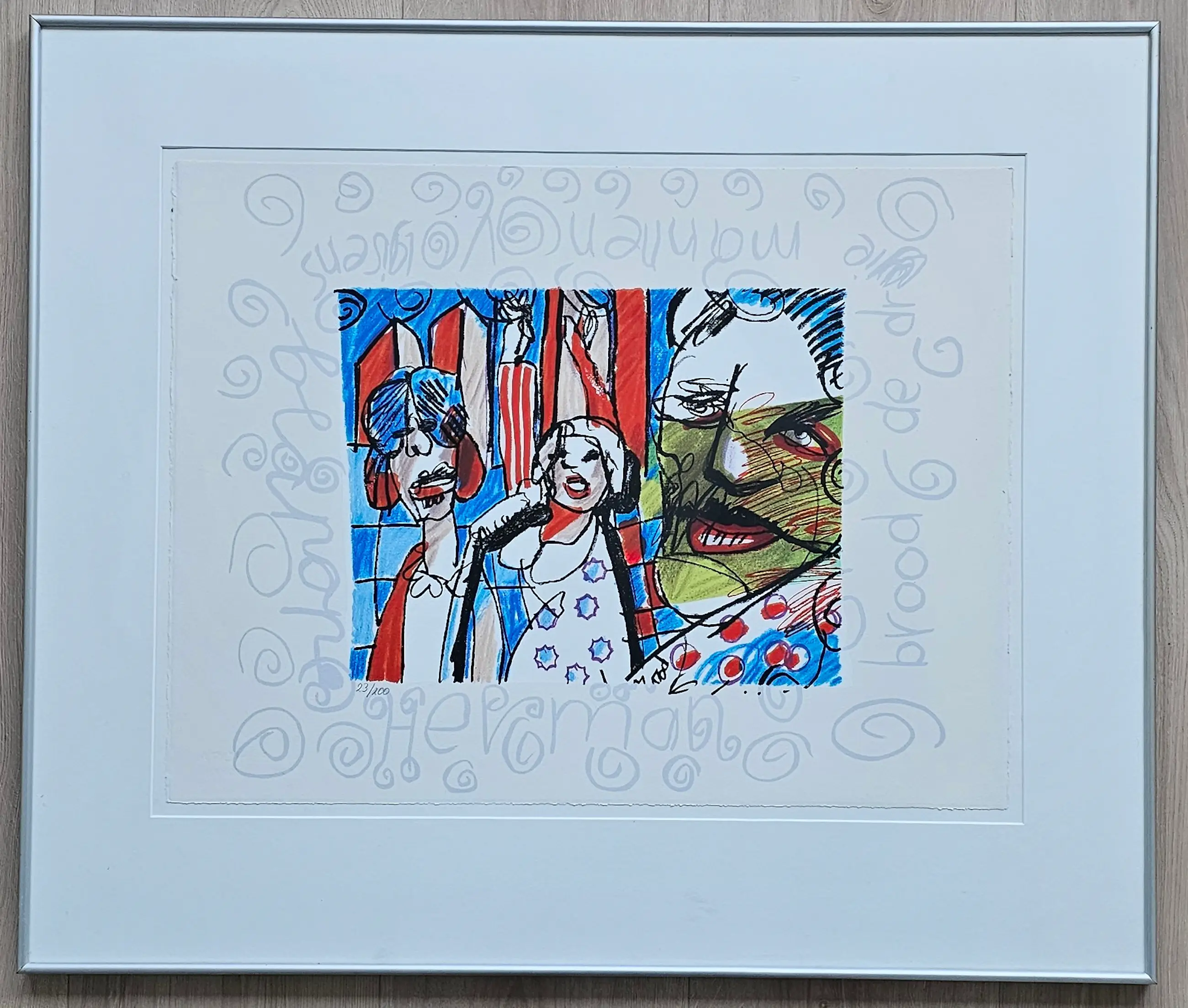Prachtige ingelijste zeefdruk met de titel "singer" van Herman Brood