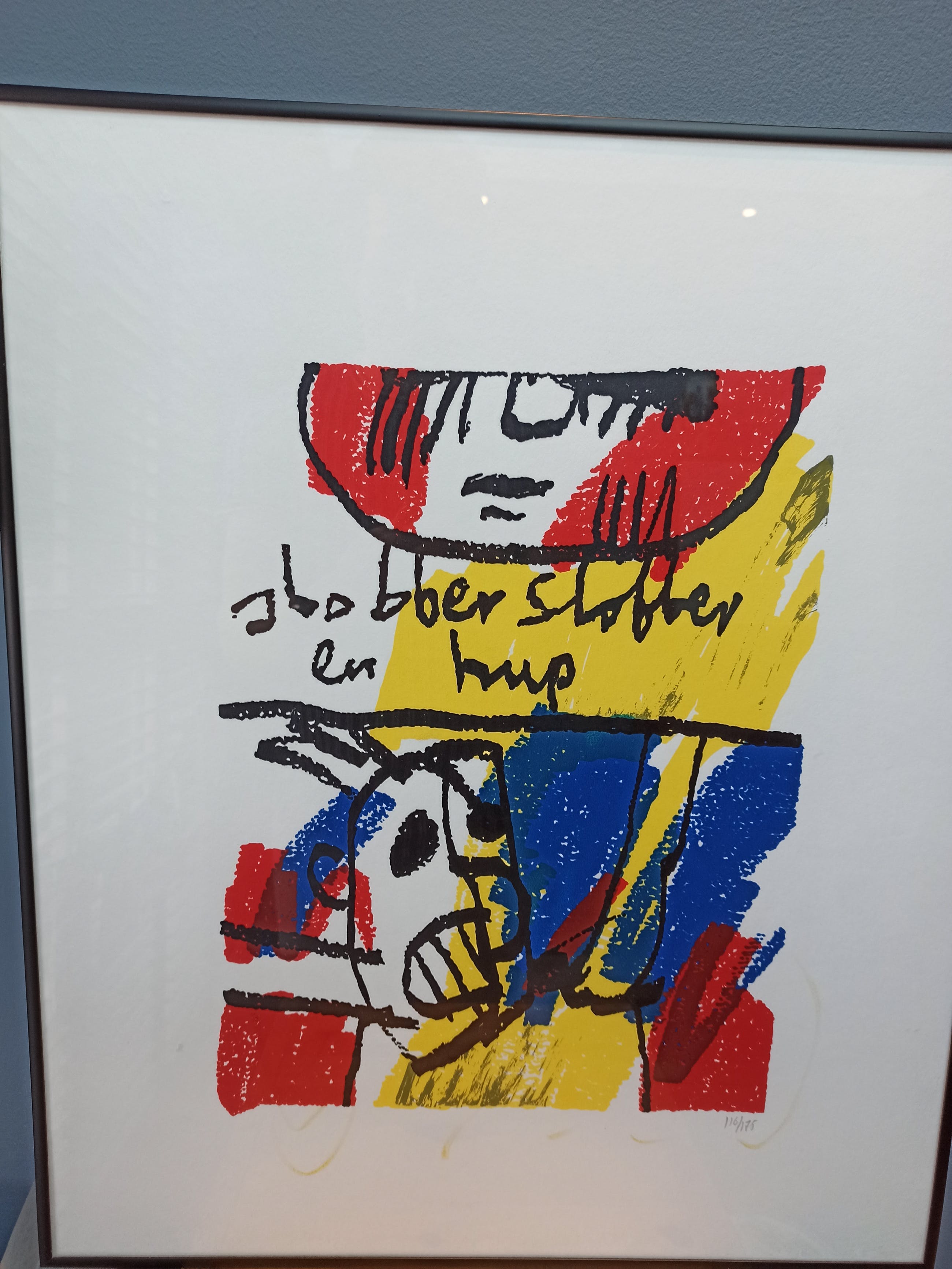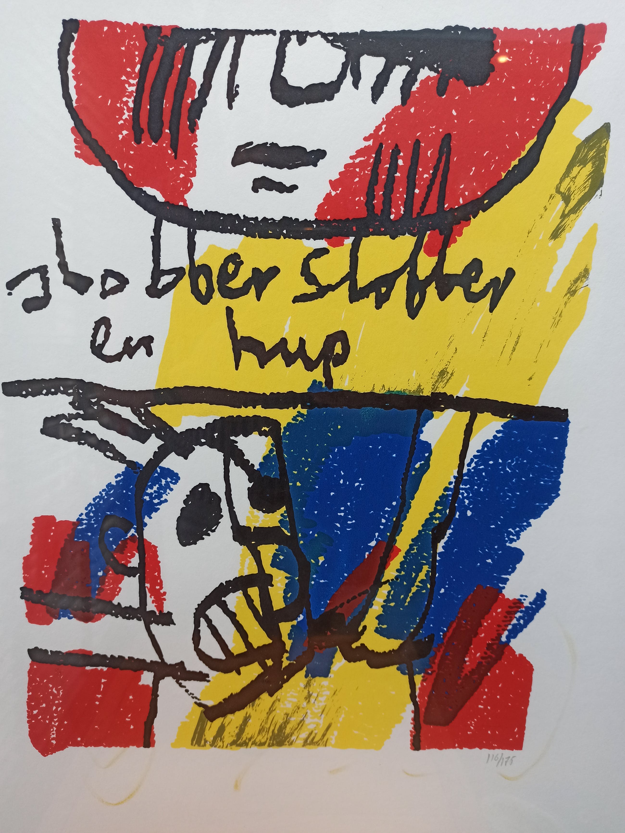 Slobber is een leuke zeefdruk op papier gemaakt door Herman Brood.